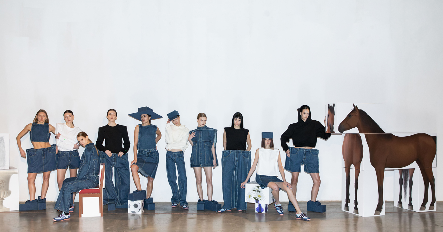 Колекція повністю виконана з деніму, а серед взуття, окрім кубічної моделі, на презентації під час Тижня моди, можна було побачити кросівки adidas SL 72 OG з третьої колаборації брендів.