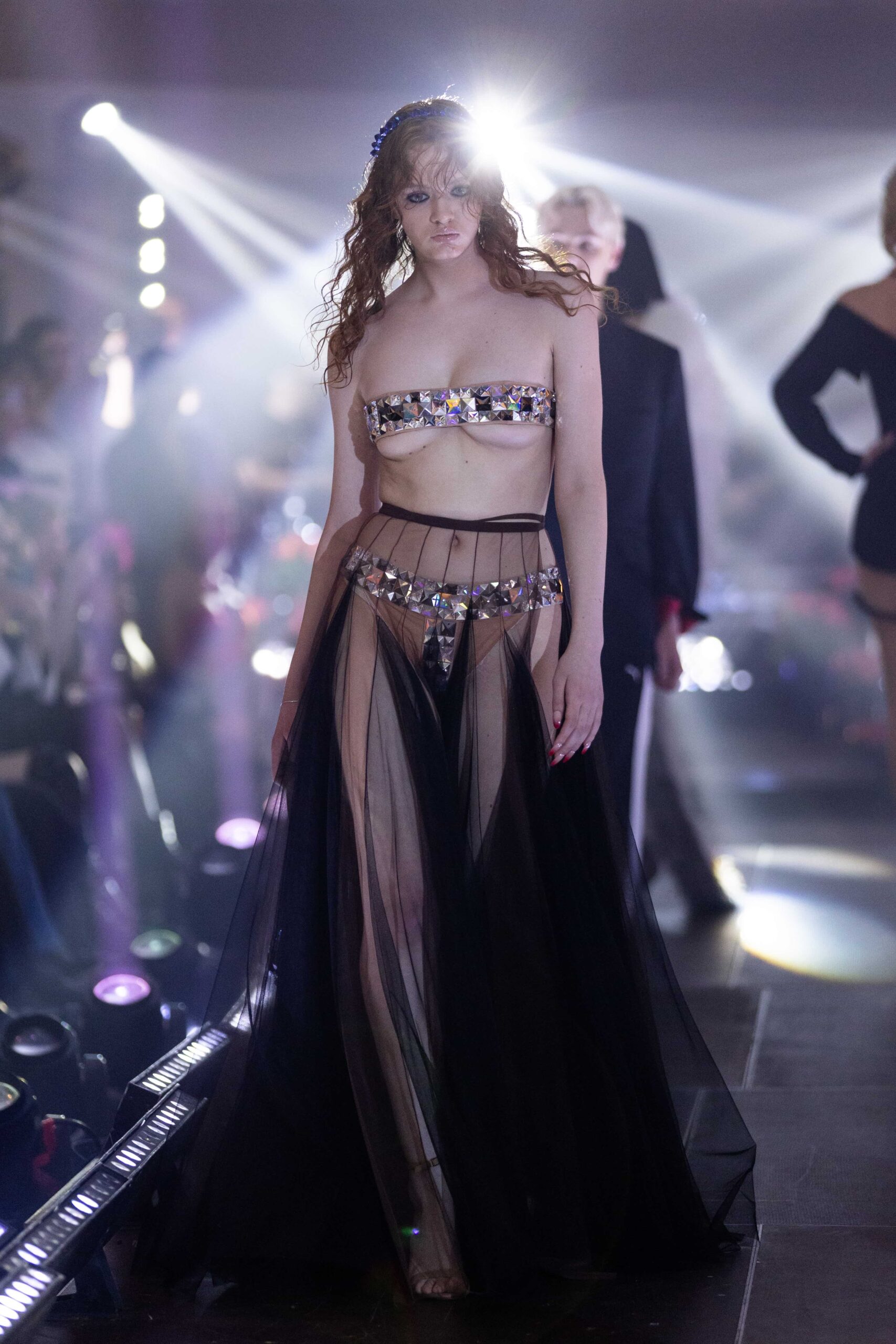 Серед інших деталей образів — оздоблення стразами, мереживом та сіткою, вирізи та принти зірок на грудях і пояси із бляшкою-серцем.