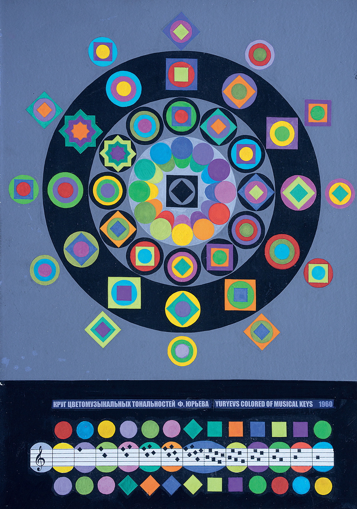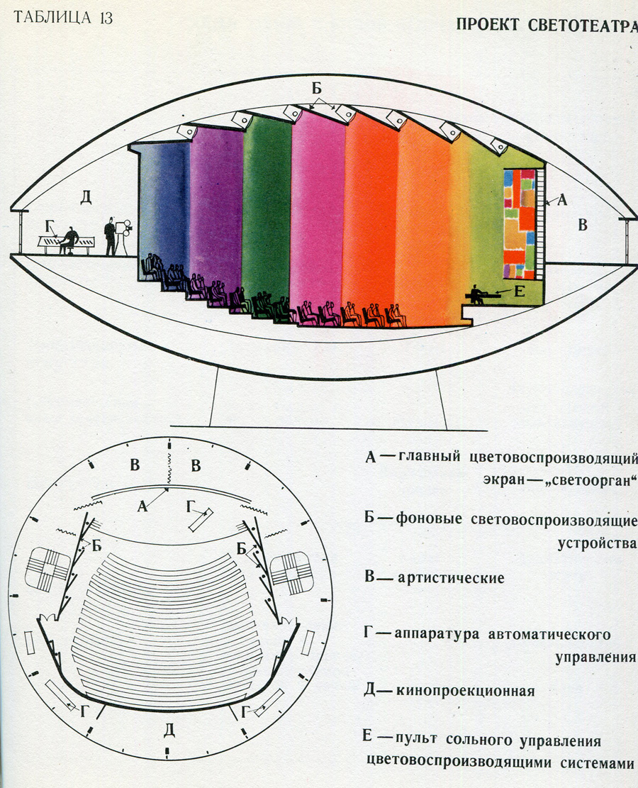 Митець працював над власною теорією музики кольору ще від 1950-х, що було не просто пошуком нових виражальних засобів, а теоретично обґрунтованим синтетичним видом мистецтва, в якому сформувалися свої жанри та інструментарій. Юр’єв довгий час викладав кольорознавство, знімав кольоромузичні фільми, писав твори для власноруч сконструйованих світломузичних інструментів і сам же їх виконував. А «Літаюча тарілка» — конференц-зала Інституту науково-технічної інформації біля станції метро «Либідська» — замислювалася й проєктувалася Юр’євим як світломузичний театр: детально продумана конструкція та нюанси внутрішнього оздоблення створювали ідеальну акустику для концертів, що мали б відбуватися у цілковитій тиші.