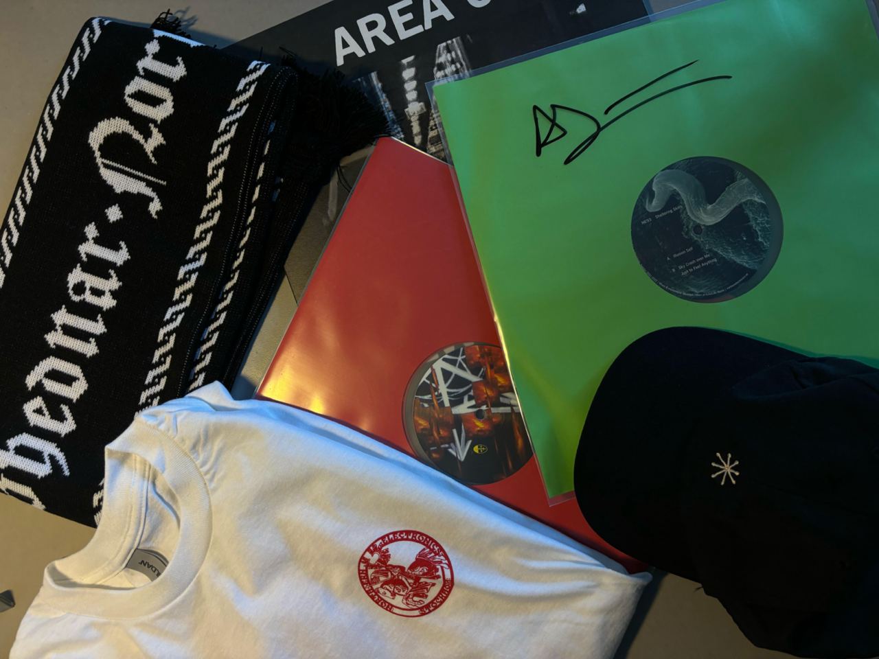 Комплект мерчу стокгольмського лейблу Northern Electronics, наданий для аукціону шведським музикантом Anthony Linell — артиста з лайнапу майбутнього івенту 14 вересня.