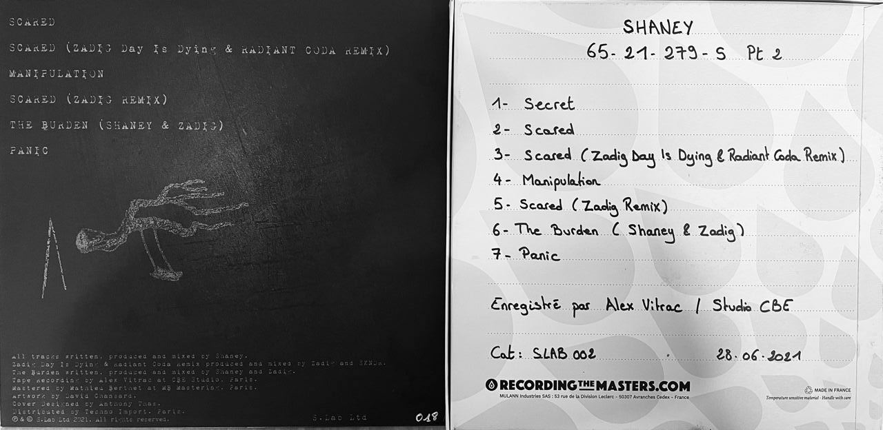Мастер-копія вінілового релізу французького лейблу S.Lab Ltd, представленого 2021 року. На альбомі — сім треків електронного продюсера Shaney, частина з яких записана у колаборації з французом Zadig. Підписом останнього доповнена і аукціонна платівка.