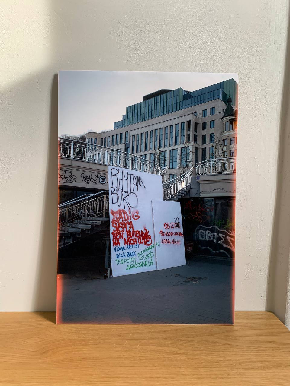 Ще один айтем бандлу — фотографія одного з постерів вечірки RB, який тоді був розміщений та розмальований балоном на Поштовій площі у Києві. Фото у форматі A3 під склом формації подарувало дизайн-бюро Jugoceania у 2019 році.