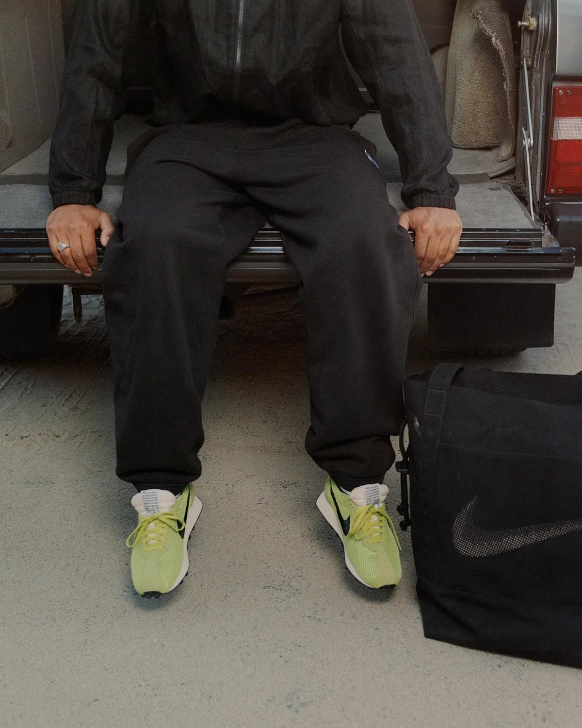 Модель отримала верх з крупної сітки із замшевими вставками у зоні носка та п’яти і доповнений вафельною підошвою. Кросівки також прикрасили вишитим «свушем» Nike та спільним брендингом на язичку, а представили пару у молочному та зеленому колорвеях.