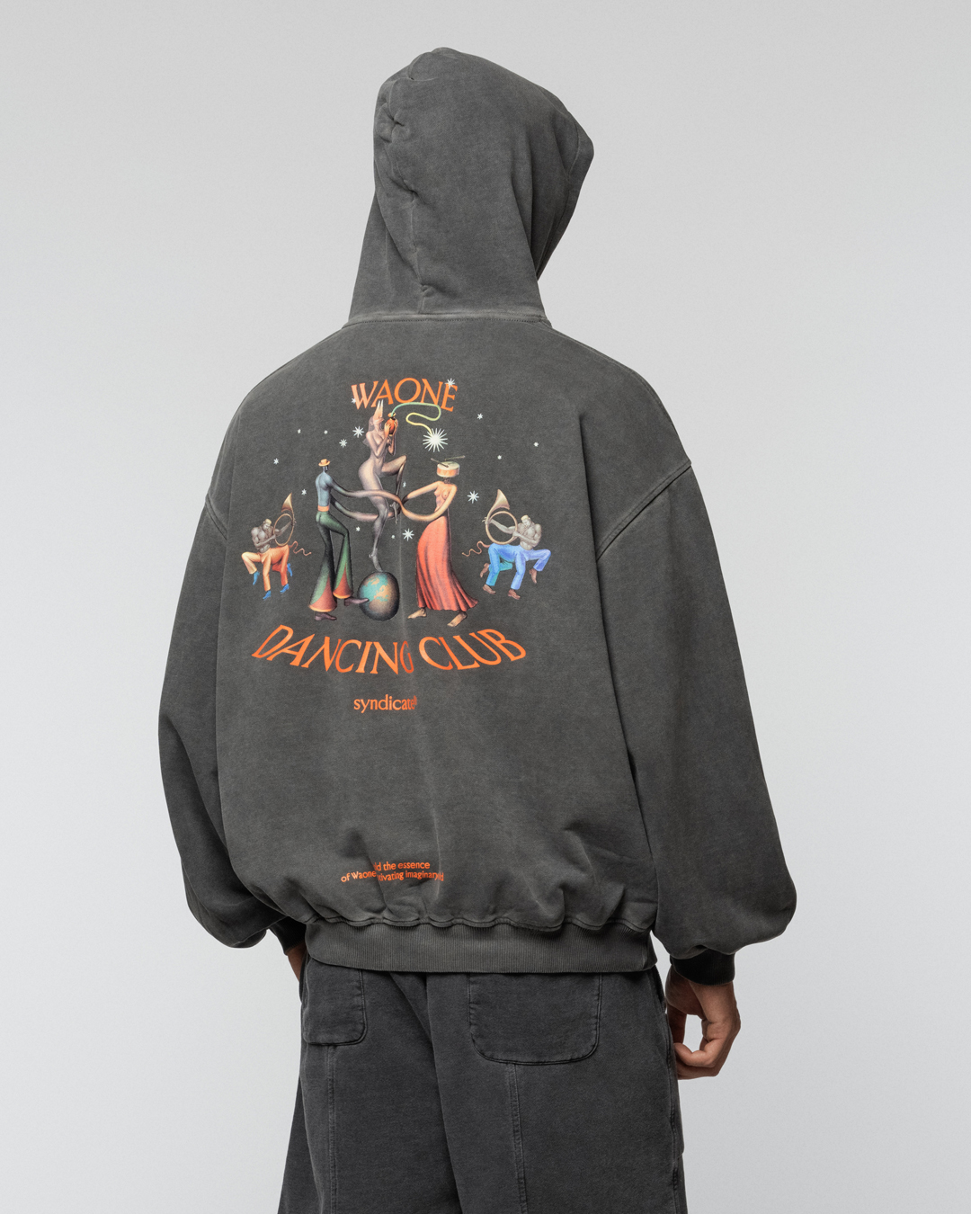 До спільної колекції Syndicate та Володимира WaOne Манжоса увійшли худі, футболки та шовкові шарфи. Вони поєднали візуальну мову та сторітелінг WaOne з вуличною естетикою Syndicate
