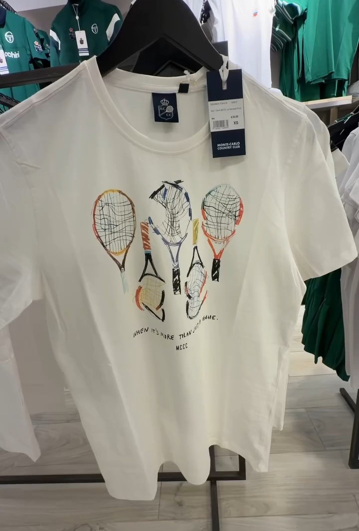 На оригінальній ілюстрації розбиті ракетки доповнені написом «Коли це більше, ніж гра» та підписом художниці. Проте на футболці підпис прибрали, замінивши його на абревіатуру тенісного клубу Monte-Carlo Country Club, де проводять турнір.