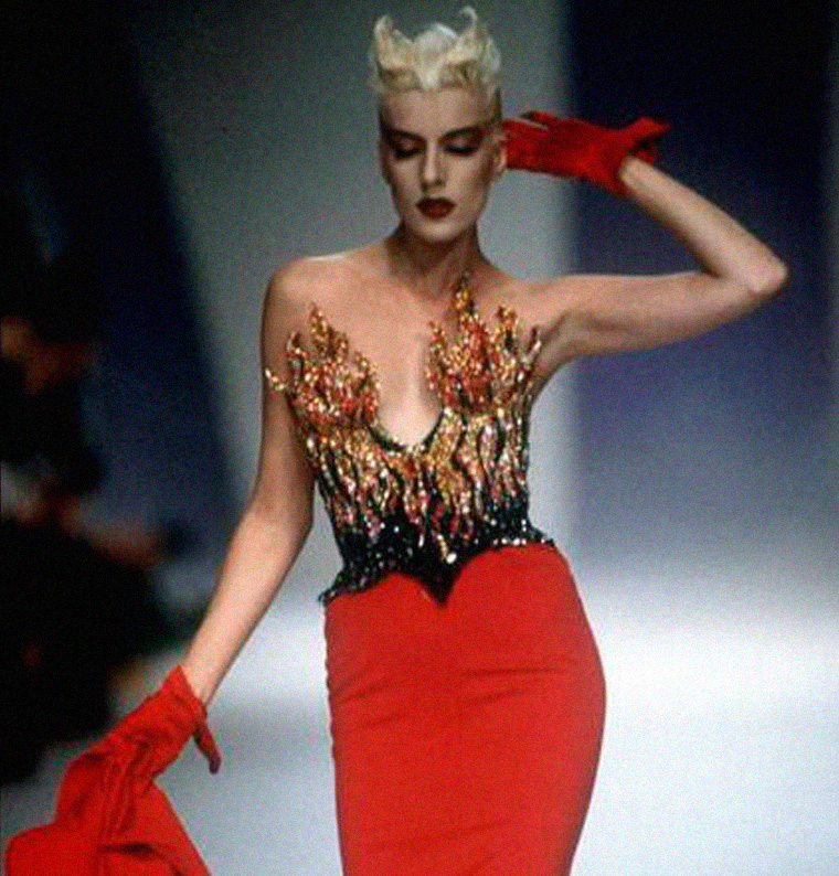 Емі Спіндлер у матеріалі WWD пояснює, що Мюглер не випадково знайшов байкерський шик у дев’яностих: «Тьєрі розробив перший кутюрний одяг з чорним костюмом з металевими прикрасами Cadillac, що виглядали як автомобіль». Вона має на увазі колекцію 1989 року — тоді Мюглер випустив бюстьє, натхненне Cadillac і прикрашене фірмовою зіркою-формою парфумів Thierry Mugler Angel, а також байкерську куртку.