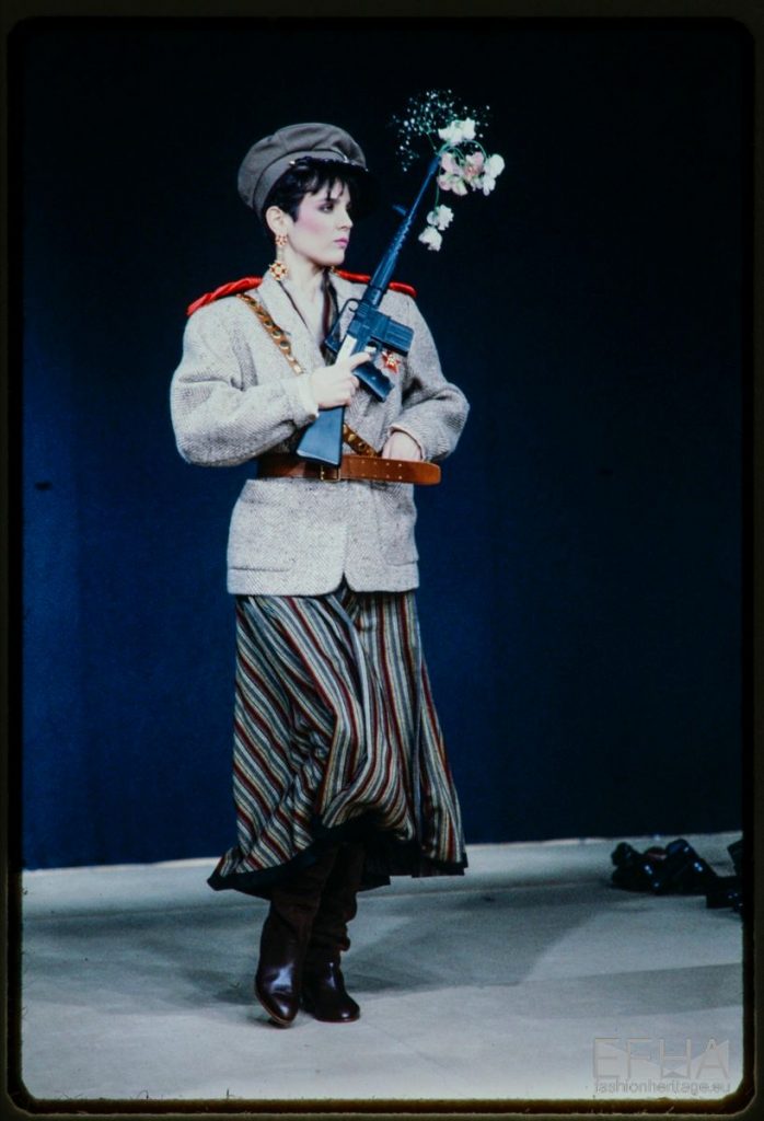Проте Мюглер не транслював подібних ідей, обмежуючись лише камуфляжними принтами, силуетами, списаними з військової форми в ранніх колекціях і в колекції весна/літо-1991. Також він створив естетику, яку фешен-преса окреслить як «гламазонки» — гламурні жінки з войовничим характером.
