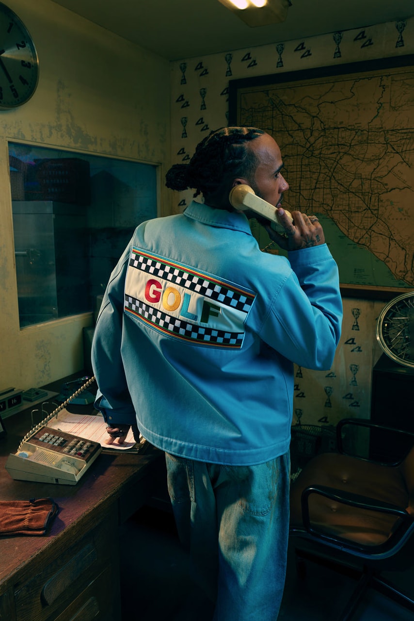Весь одяг доповнили подвійним брендингом та звичними для GOLF WANG кольоровими принтами з відсиланнями до перегонів: так одну з курток доповнили логотипом GOLF WANG із зображеннями фінішної лінії, а сорочку — графічними зображеннями призових кубків, шин та п’єдесталів.