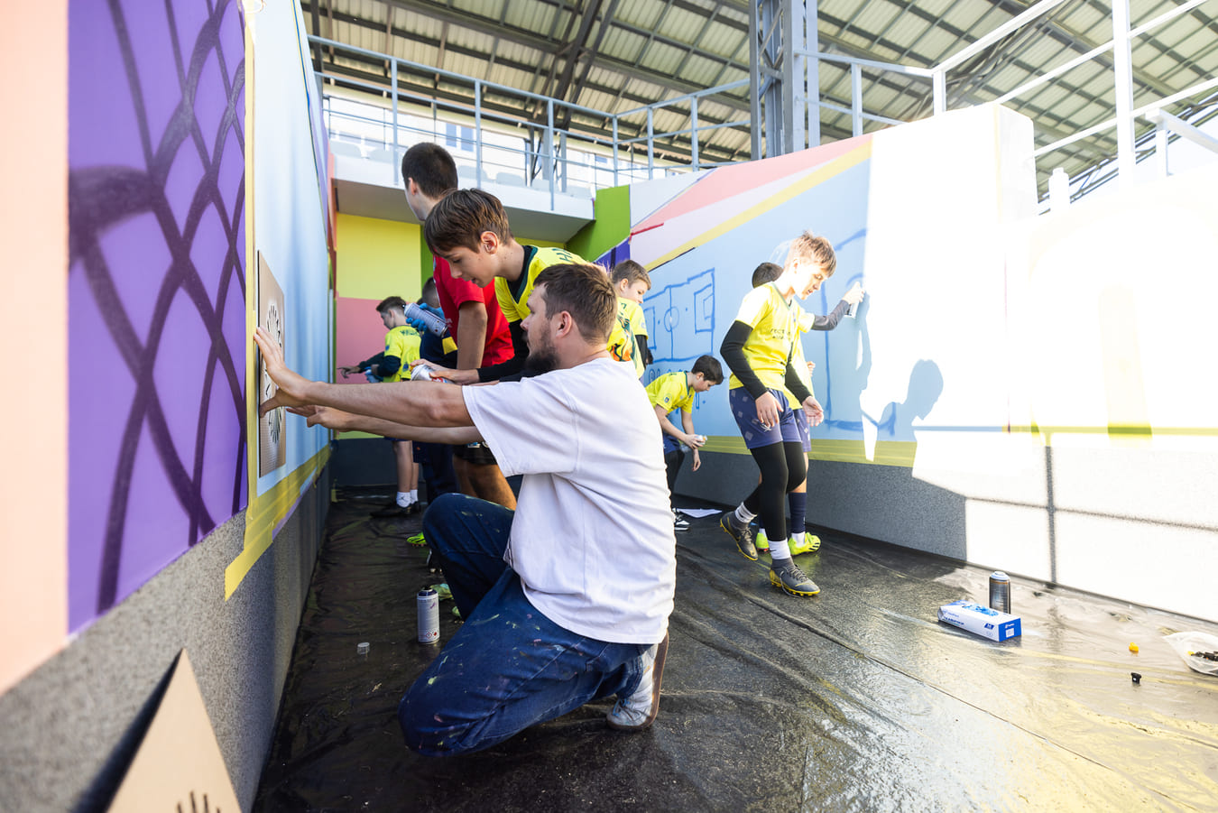 У Фундації пояснили, що вирішили не обмежуватися лише ремонтними роботами, а й «надати цінності об’єкта». Вибір пав на мурал, присвячений футбольній темі.