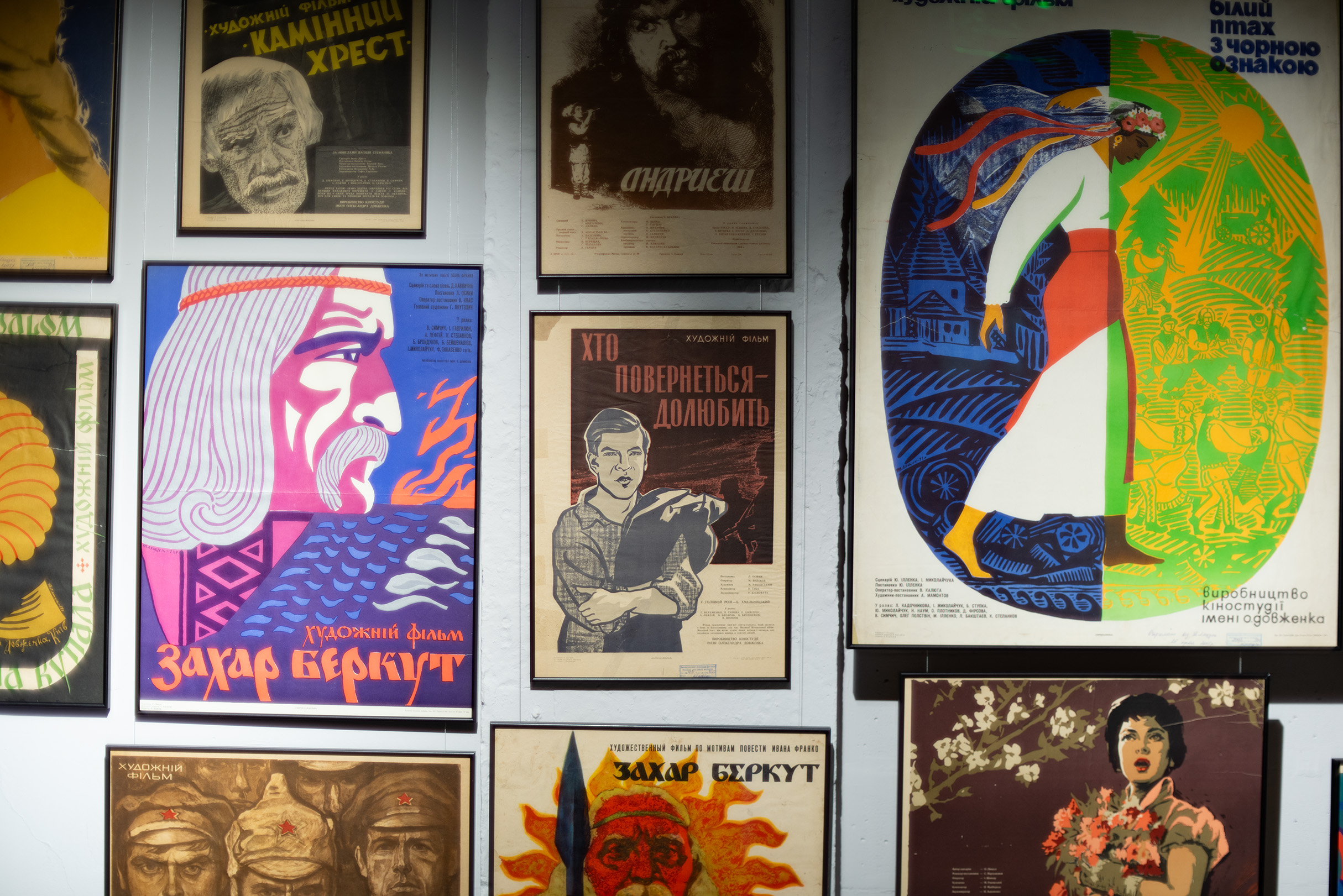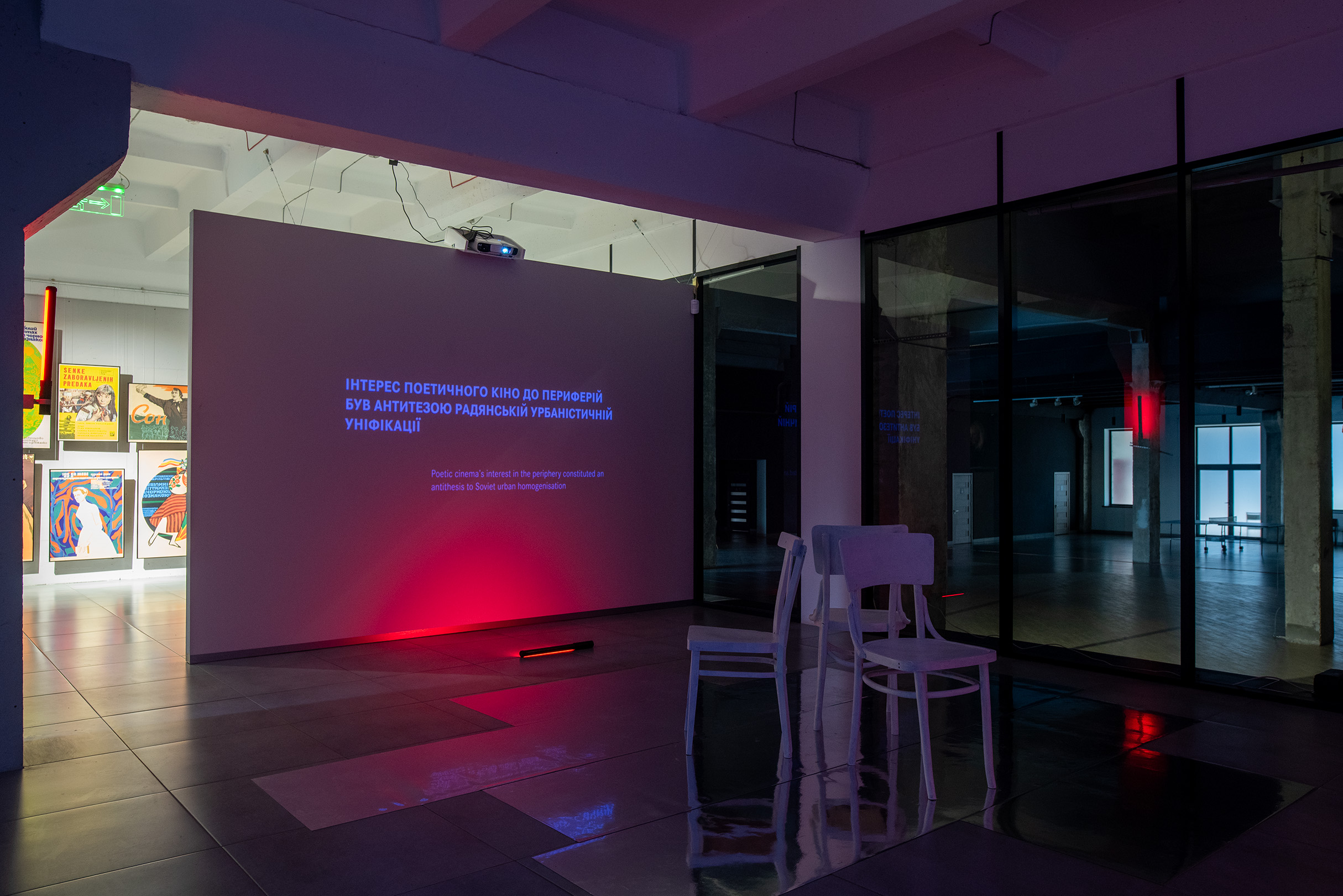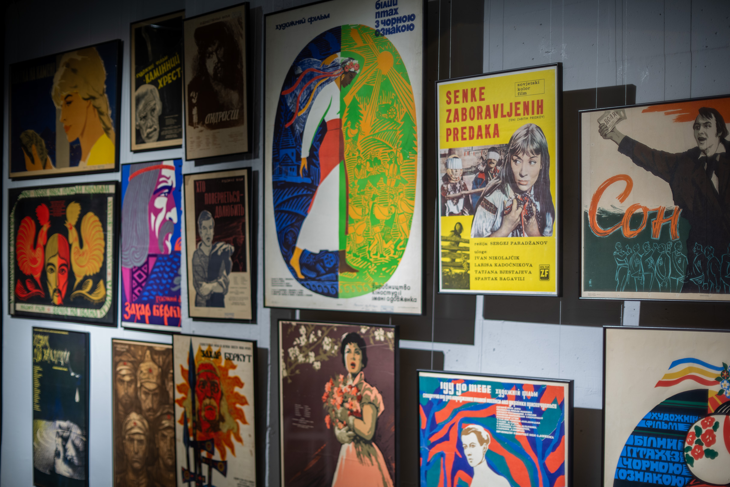 Згодом доповнили експозицію афішами й фотографіями з нашого архіву, а також візуальними об’єктами, які створила дизайнерка виставки Лєра Гуєвська, що відсилають до фільму Параджанова «Київські фрески» — одного з нездійсненних шедеврів поетичного кіно.