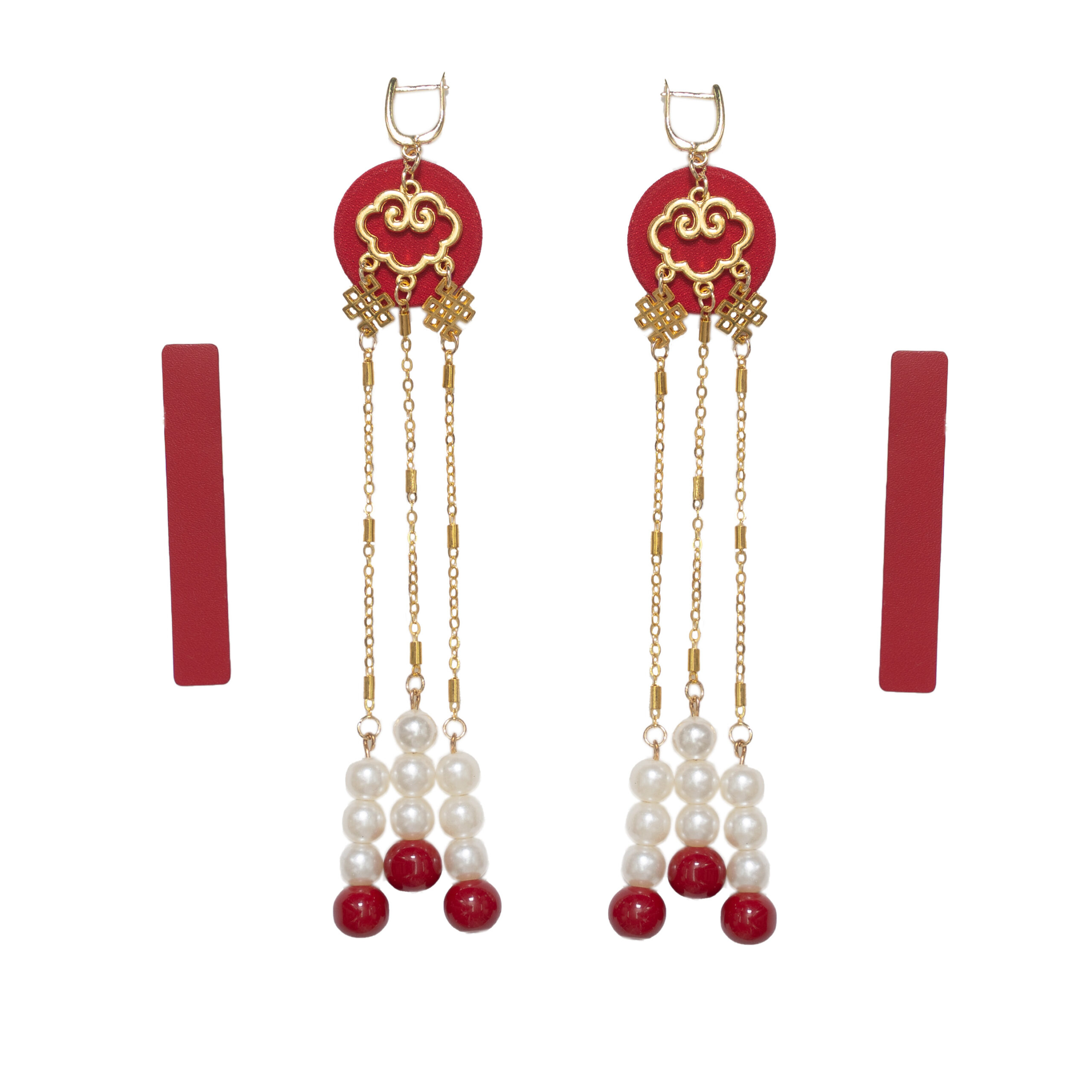 Сережки прикрашено традиційними візерунками. Монголки зазвичай носять довгі, а іноді — дуже довгі сережки, тому що це допомагає жінкам мати худіше обличчя та довшу шию. А сумка, як і комірці форми, доповнена візерунками вишивки правителів XIII століття.