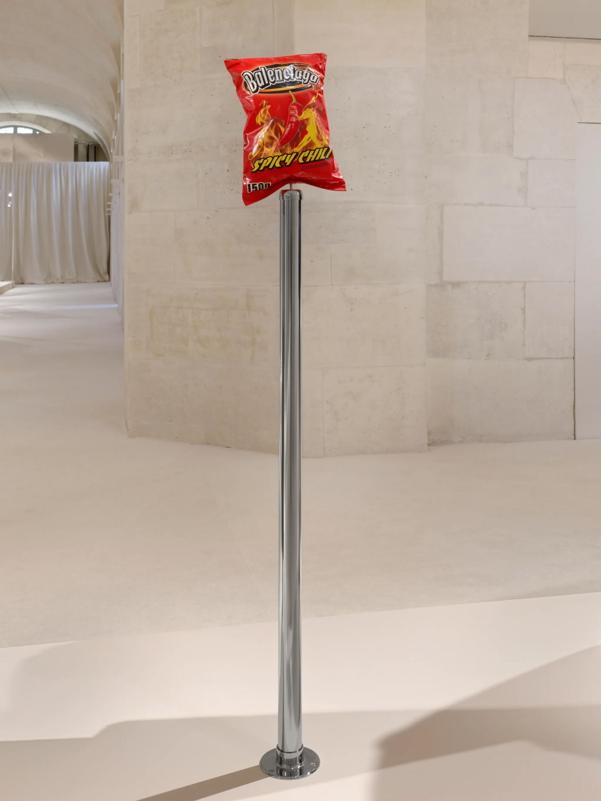 На основі частини речей також створили артоб’єкти — для цього Balenciaga запросила митців, з якими співпрацювала в межах проєкту Balenciaga Art in Stores, зокрема Марка Дженкінса та Ендрю Гріна. Дженкінс вдягнув свого фірмового гуманоїда в речі з колекції Red Carpet бренду, a Грін перетворив шість пар взуття та аксесуарів на експонати.