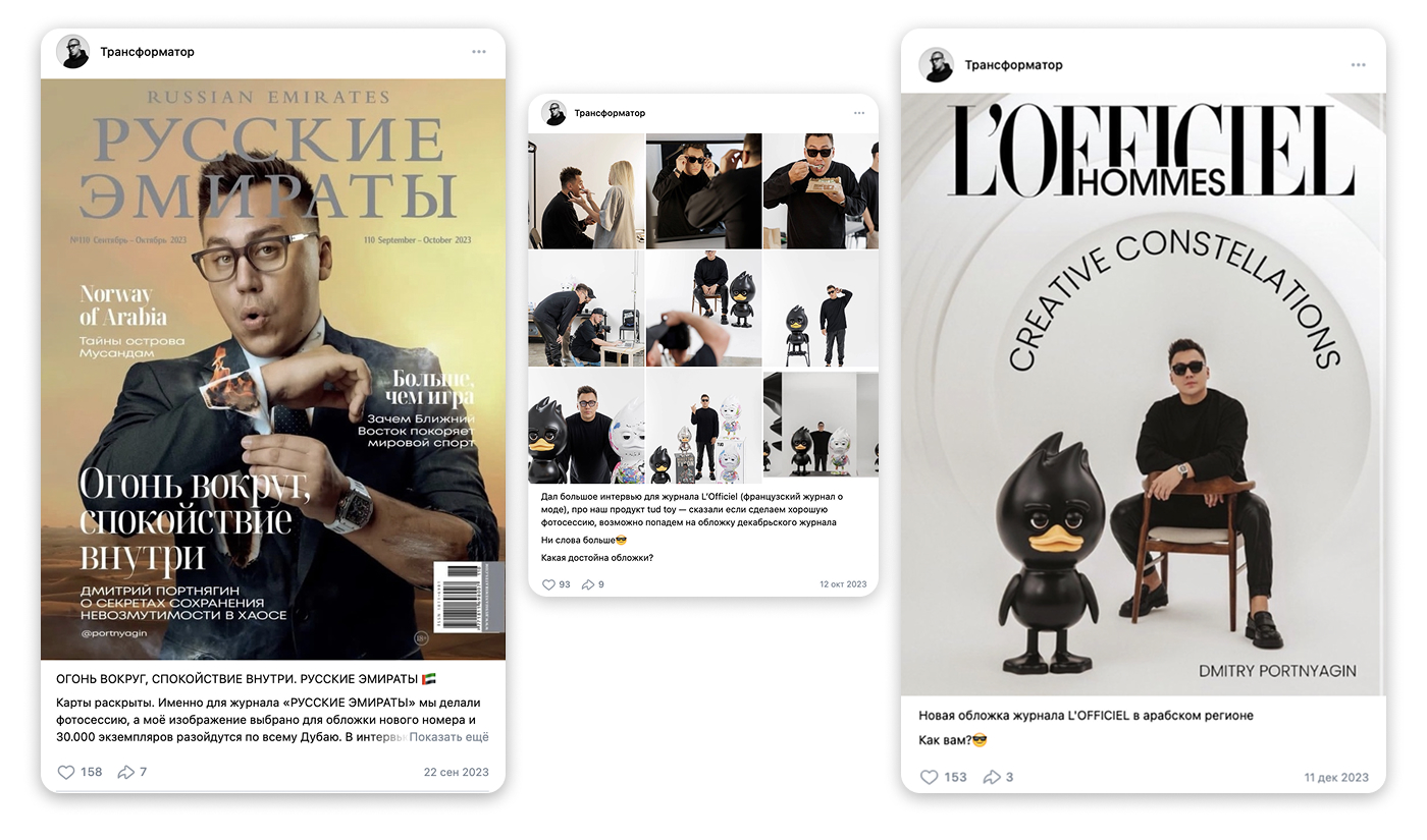 На Cosmoscow приходив і Дмитро Портнягін, який із березня 2022 року до 2024 року жив в Еміратах, де розвивав не лише TUD Toy, а й інші бізнес-проєкти, зокрема мережу лазень SIBERIA.