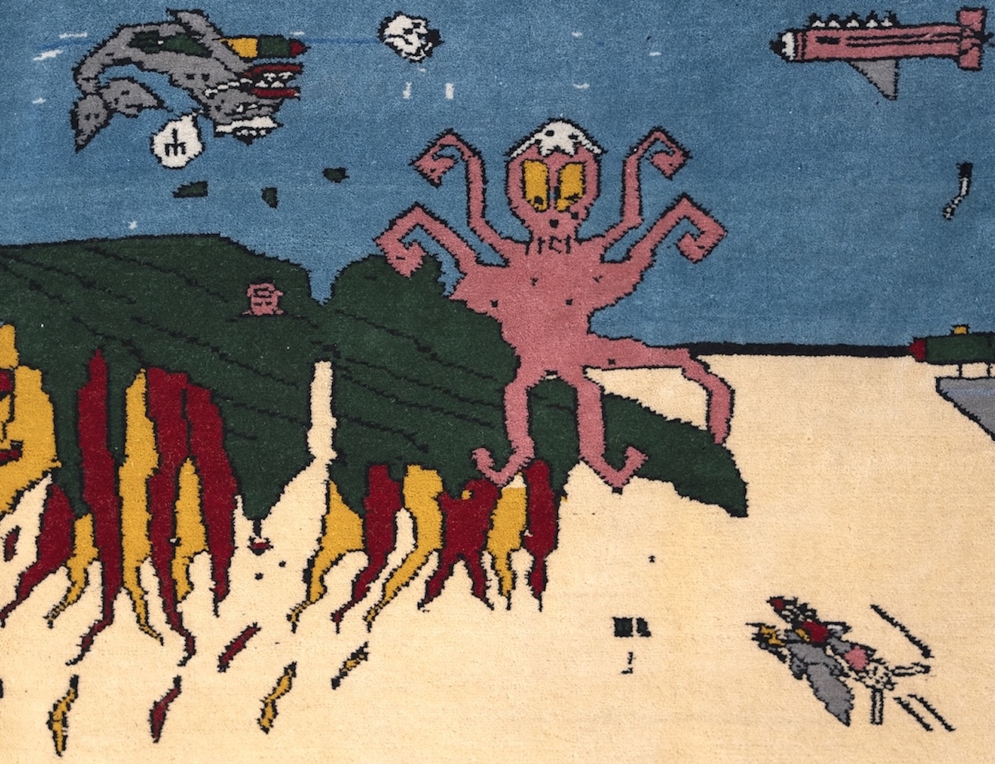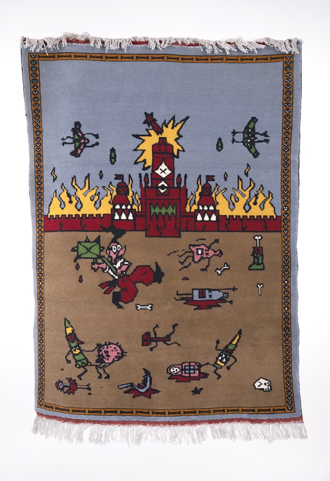 Команда проєкту розповідає, що традиція воєнних килимів зародилася в Афганістані під час радянської окупації у 1979 році — тоді місцеві майстрині ткали килими з образами, наприклад, військової техніки чи танків.