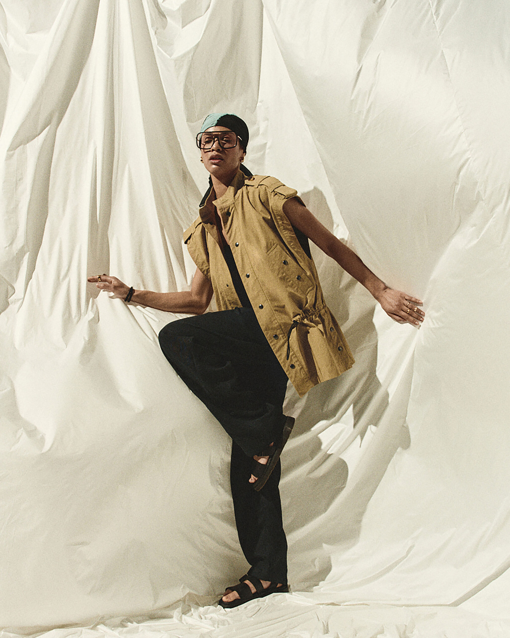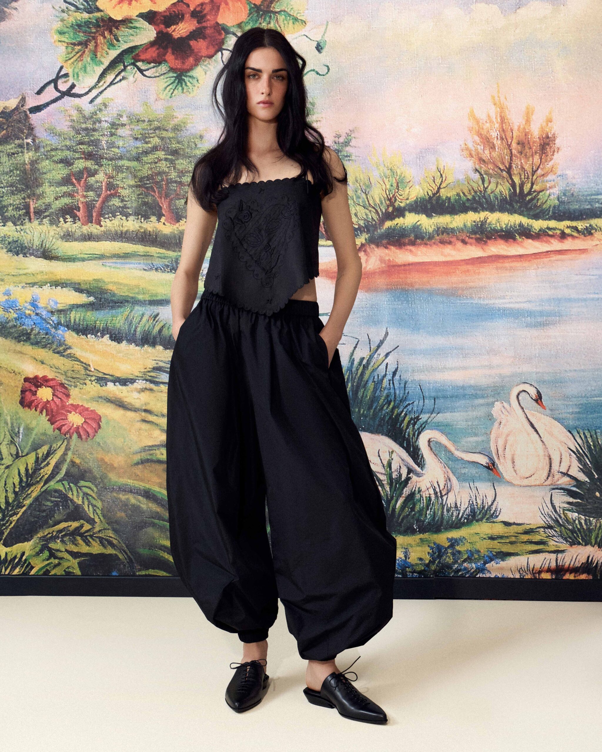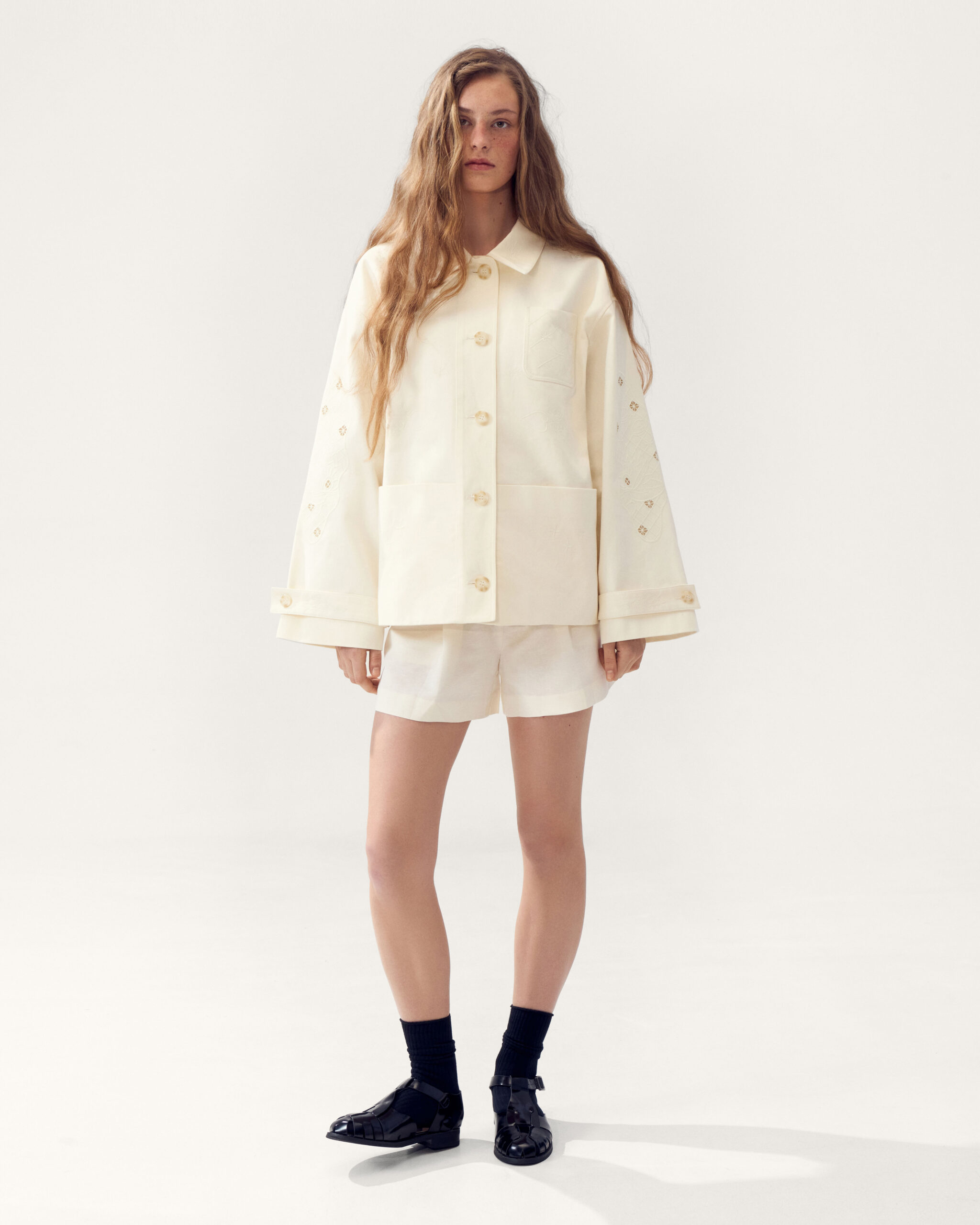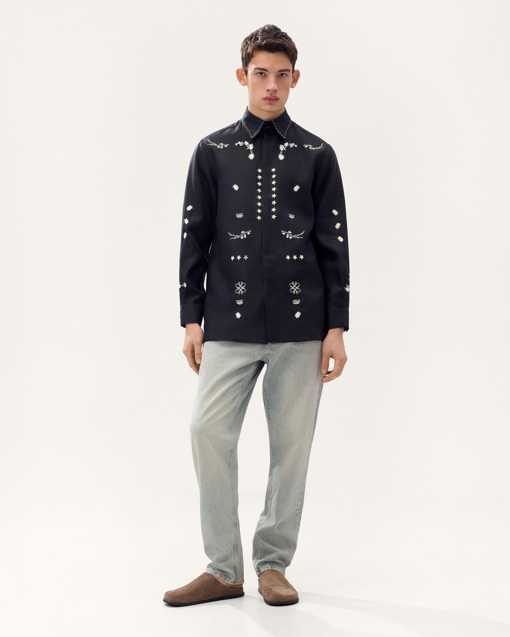Серед речей — польові куртки, об’ємні жилети, піджаки з бавовняного полотна, широкі штани та комплекти з деніму. Селекцію також доповнили речами з ремісничої лінії THEO, у якій представлений одяг з рафії, жакардові сорочки з люрексом та речі з декоративними елементами з пір’ям.