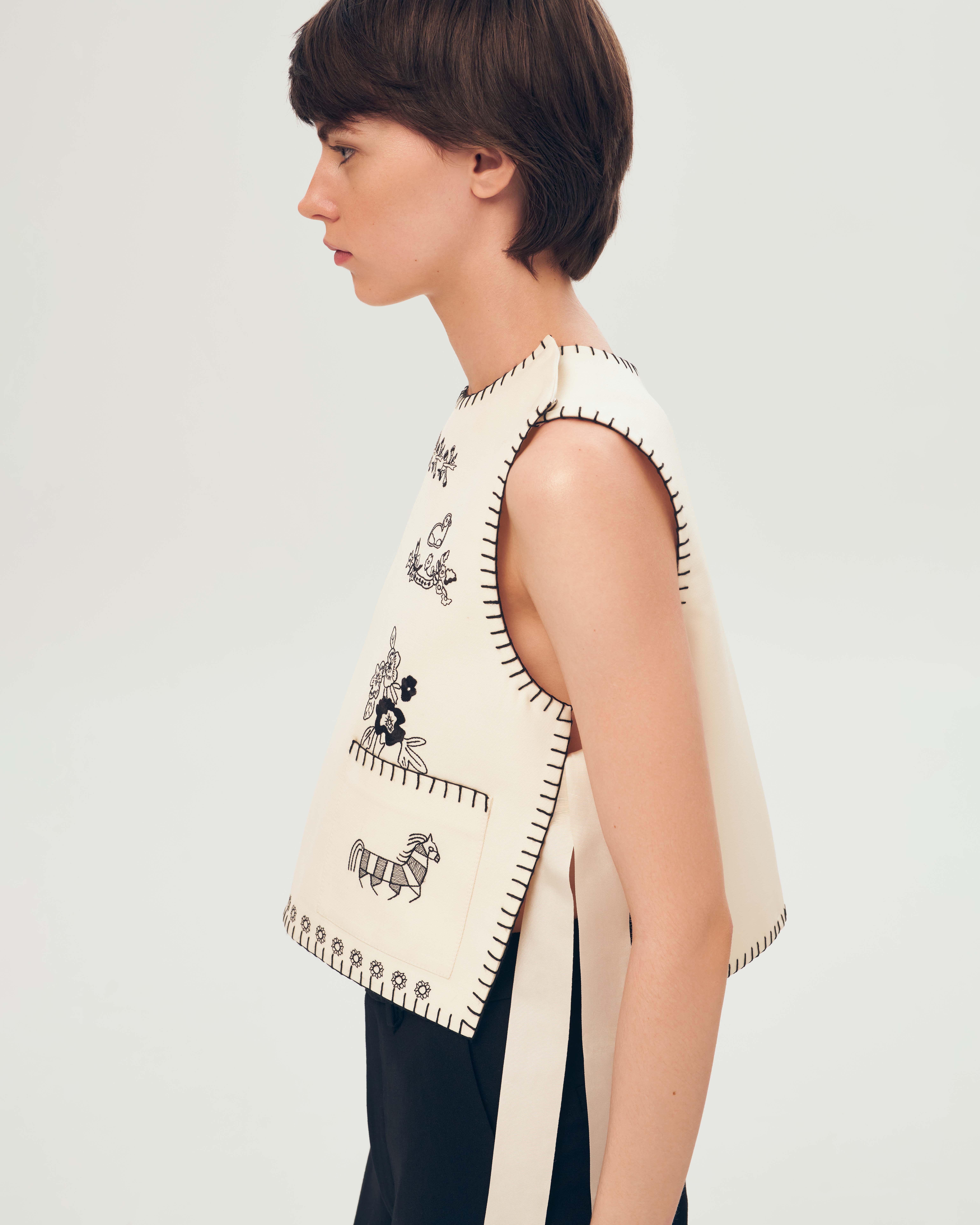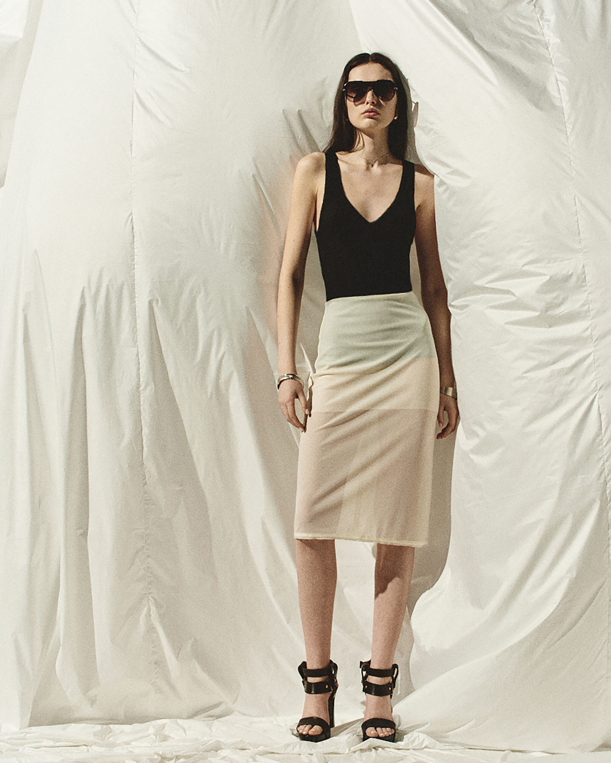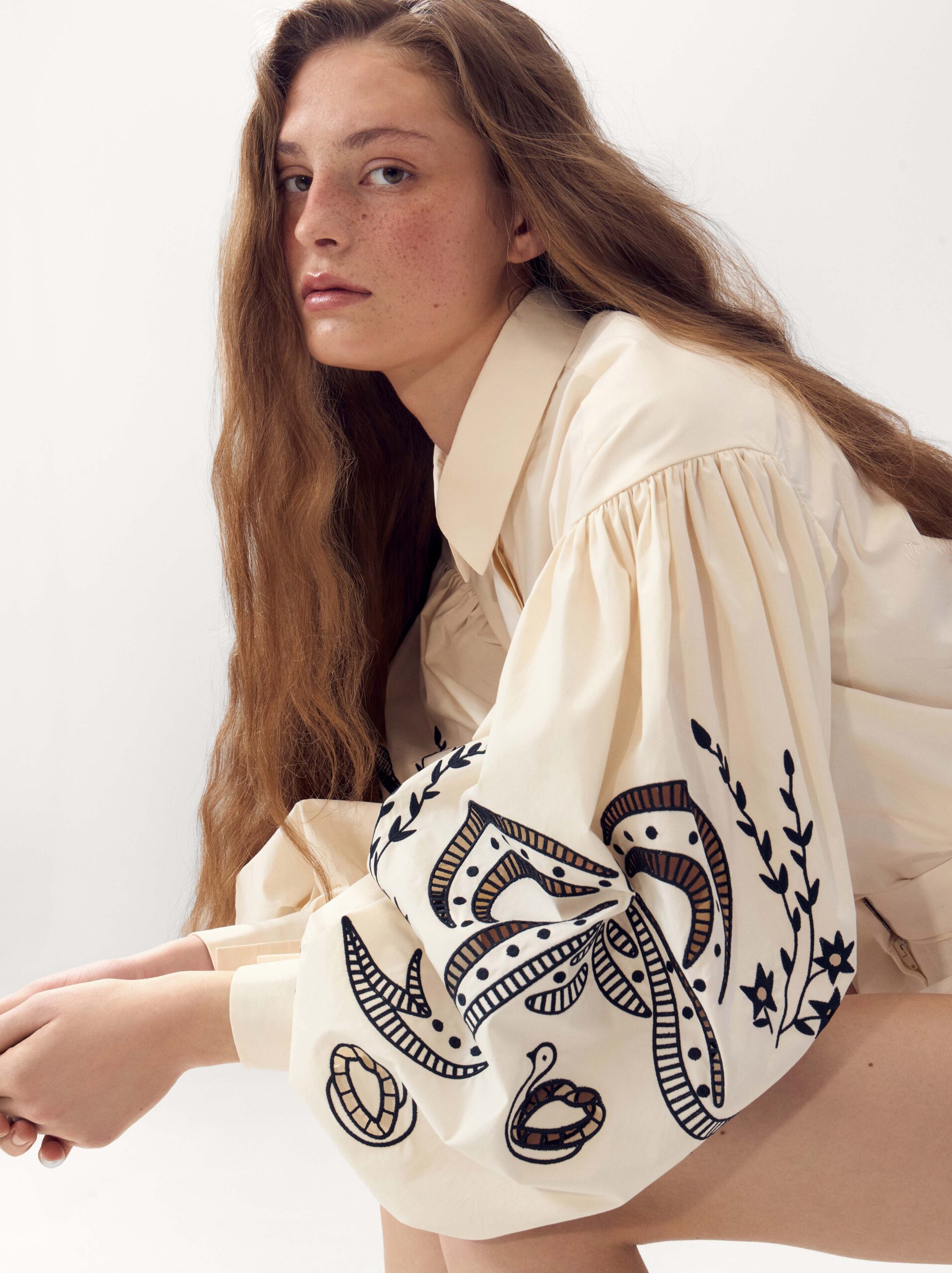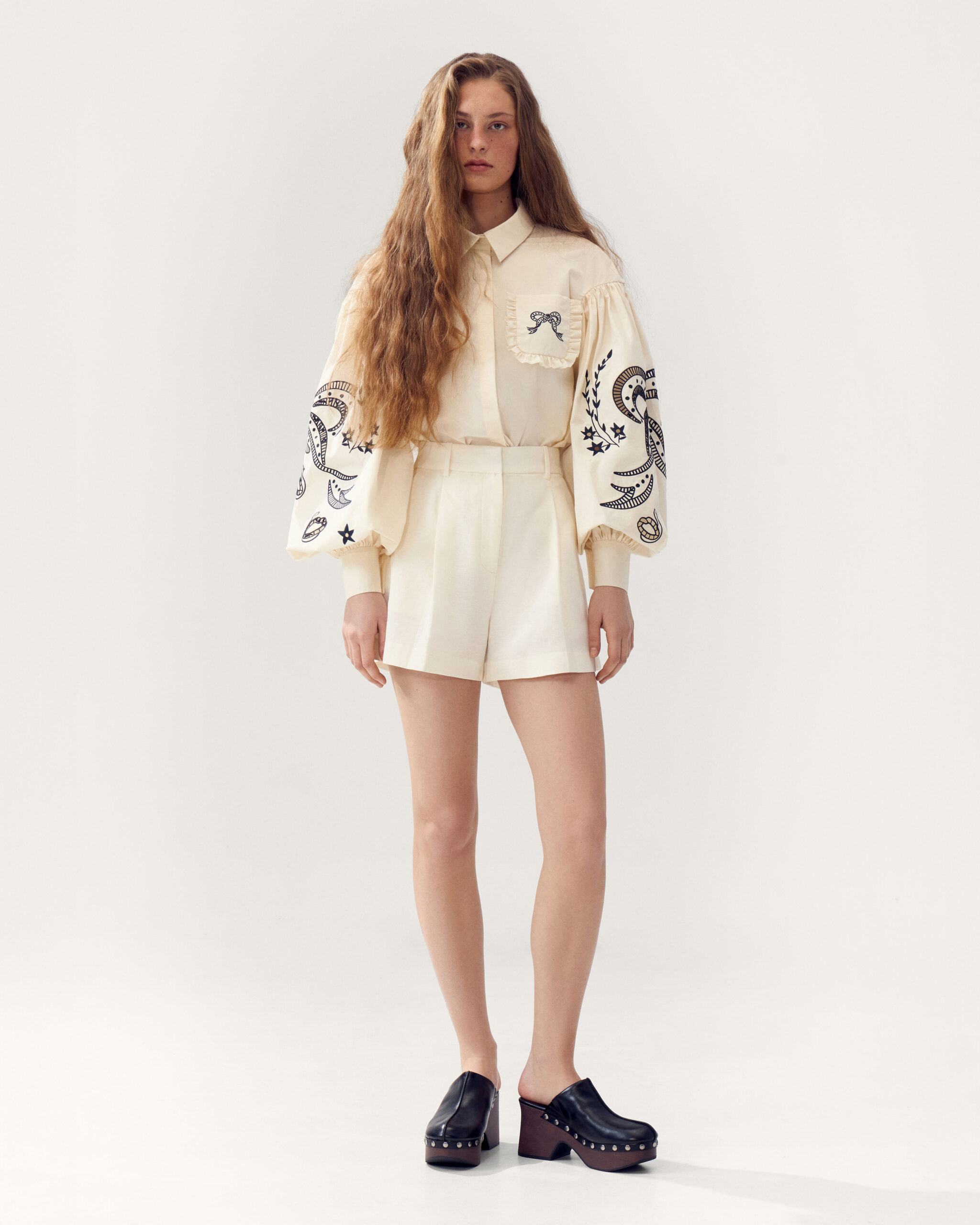 Серед речей — польові куртки, об’ємні жилети, піджаки з бавовняного полотна, широкі штани та комплекти з деніму. Селекцію також доповнили речами з ремісничої лінії THEO, у якій представлений одяг з рафії, жакардові сорочки з люрексом та речі з декоративними елементами з пір’ям.