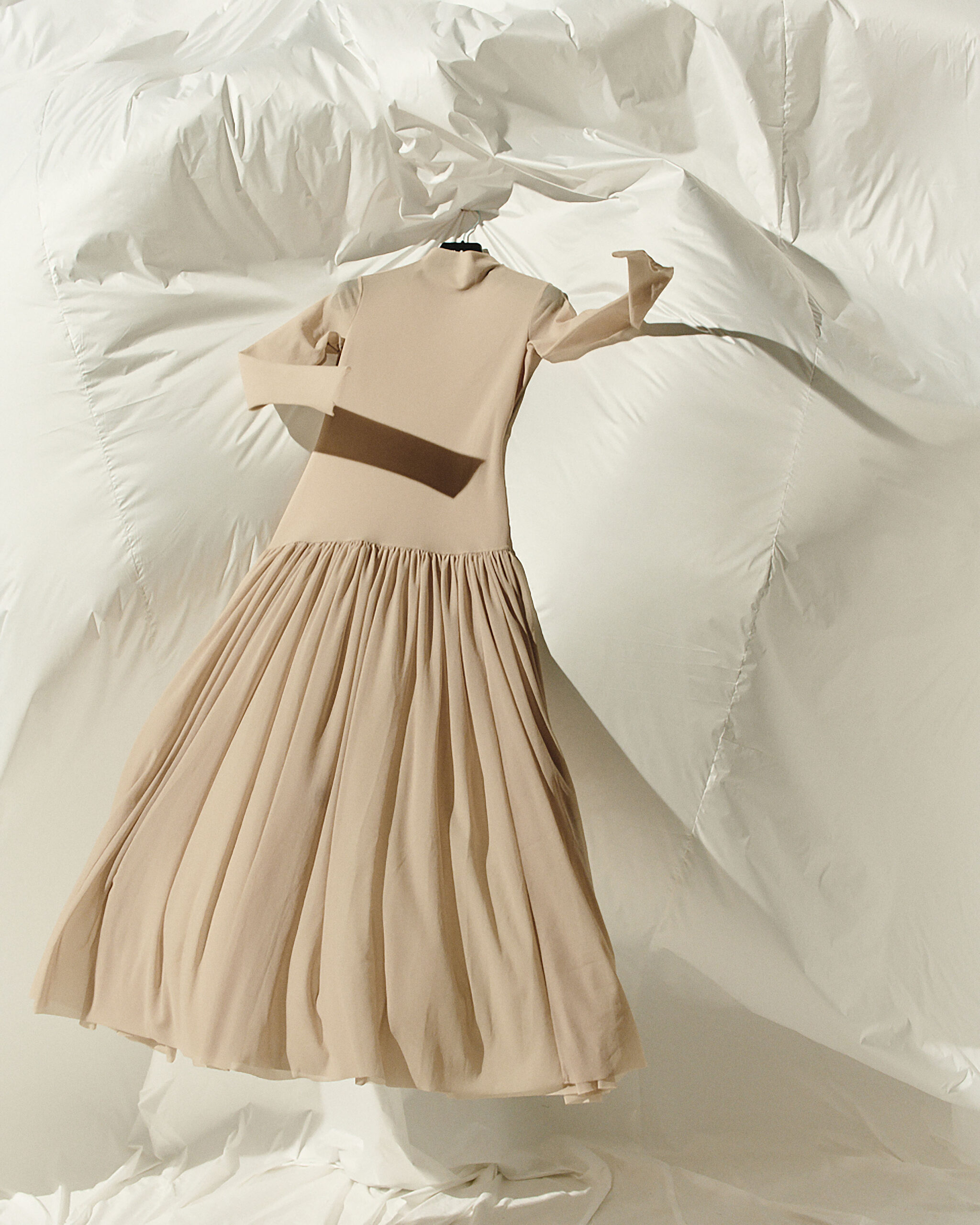 У речах, представлених на виставці, бренд досліджує ритм, що лежить в основі сучасного життя. Силуети поєднують в собі структурованість та плавні форми — в THEO це називають «простором, де невинність зустрічається з бунтарством».