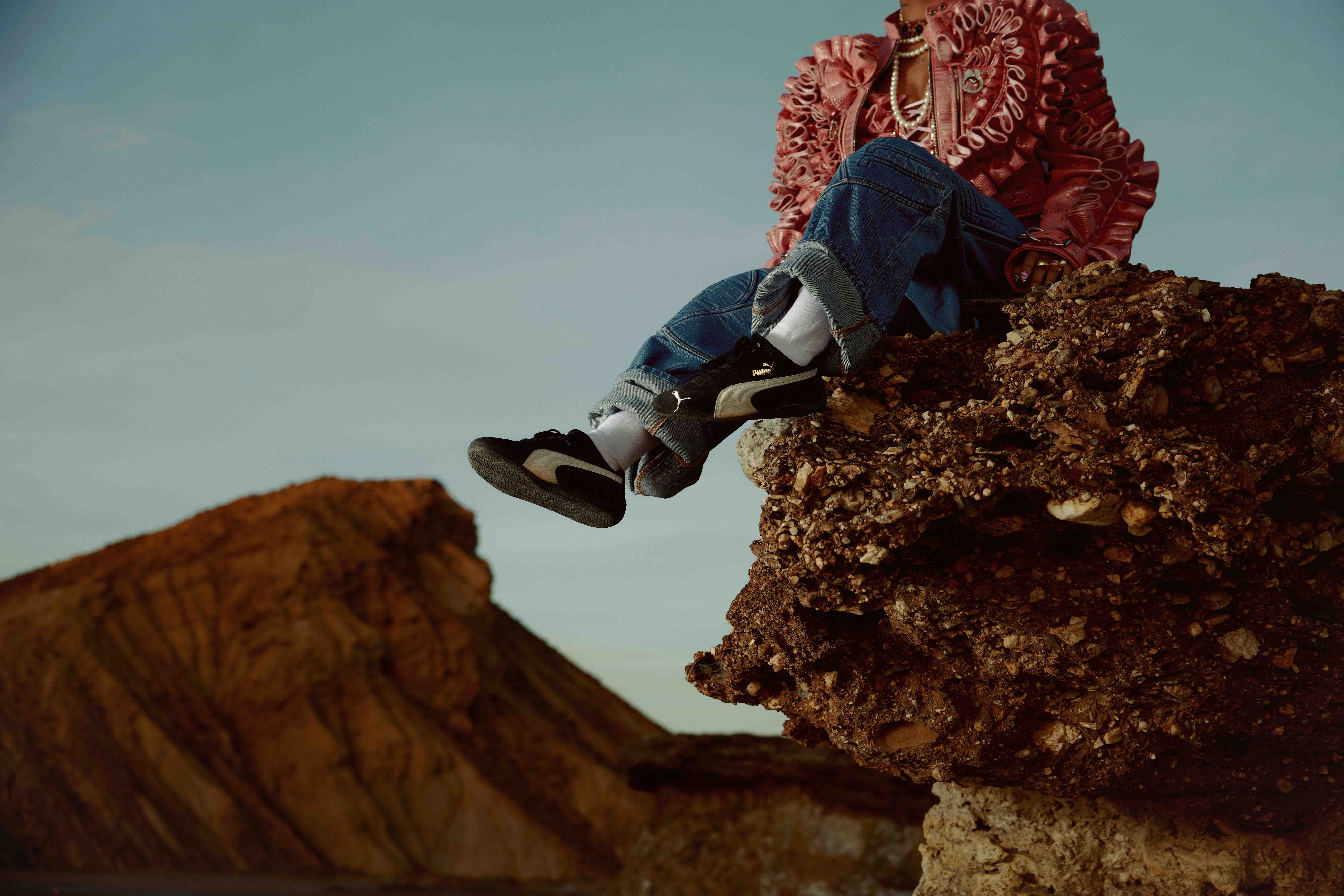 Пару представили у червоно-чорному колорвеї з білими боковими хвилями PUMA. Взуття також прикрасили оновленим логотипом PUMA Cat спереду.