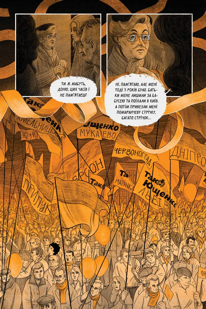 Я обирала насамперед ті події, які, як на мене, можуть трошки спростити й пояснити, наприклад, чому для нас так важлива мова, тяглість слова геноцид, чому так важливо мати свою церкву — це звісно що повʼязано з Руссю і тим, як росія окупувала це слово, чому для нас так важлива демократія — і тут важливо згадати Помаранчеву революцію і Революцію Гідності, без якої своєю чергою не розкажеш про війну.