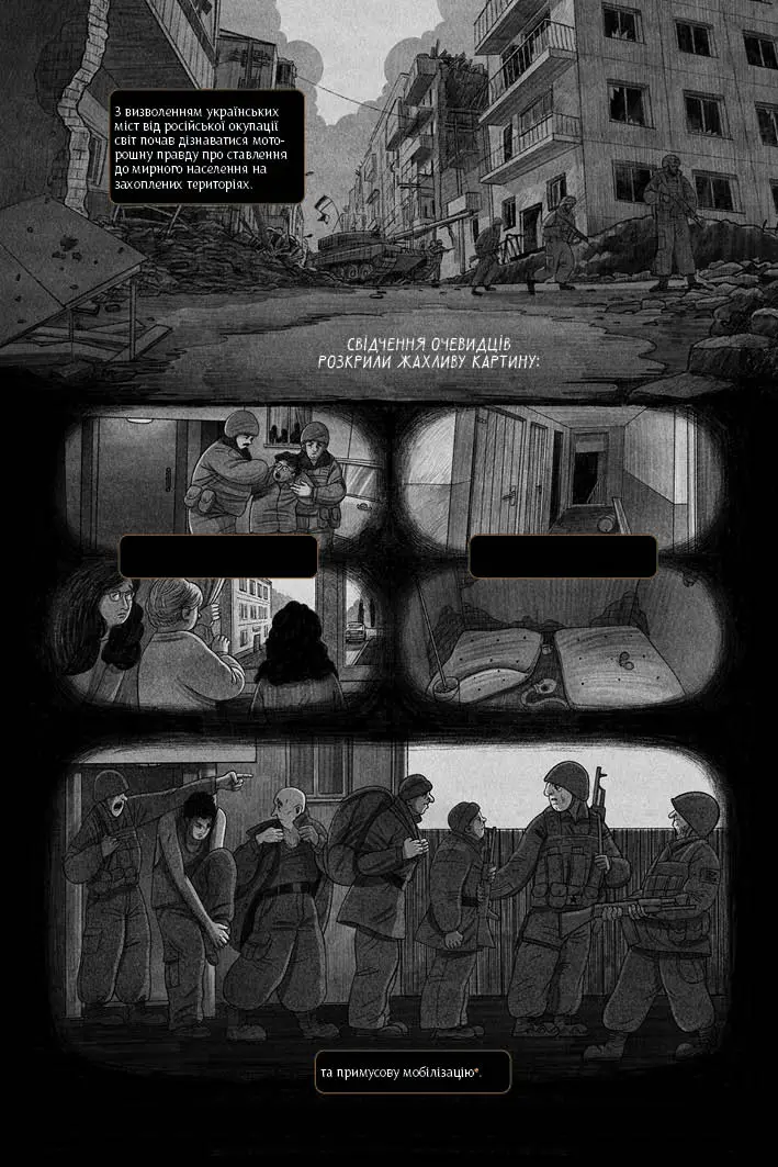 А ще мені здається, що їм важче працювалося. У процесі написання сюжету я більшість часу провела в сльозах, тому що писати подібне емоційно важко. І я насправді не знаю як їм велося, коли доводилося малювати обличчя російських пропагандистів і тому подібних людей.