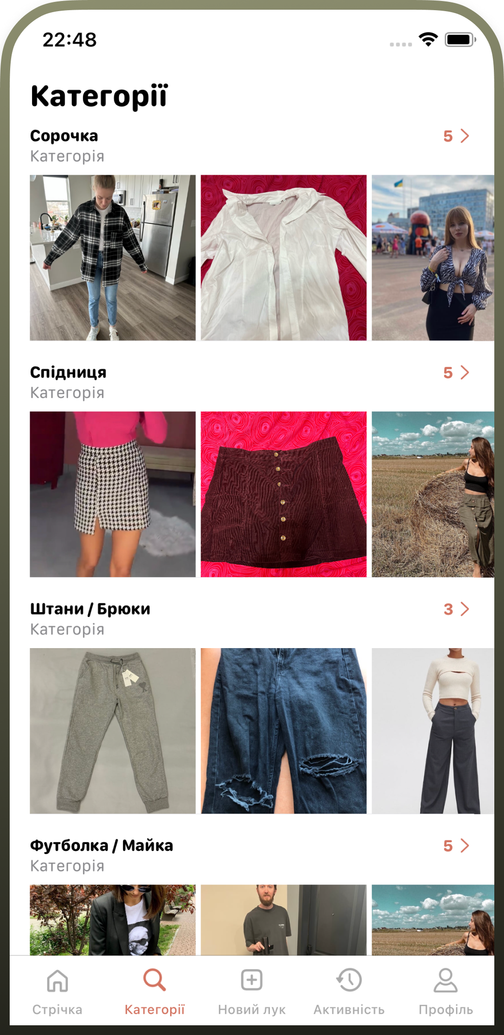 Візуально маркетплейс поданий у форматі стрічки новин із фотографіями та відео образів та окремих речей, які користувачі виставляють на продаж.