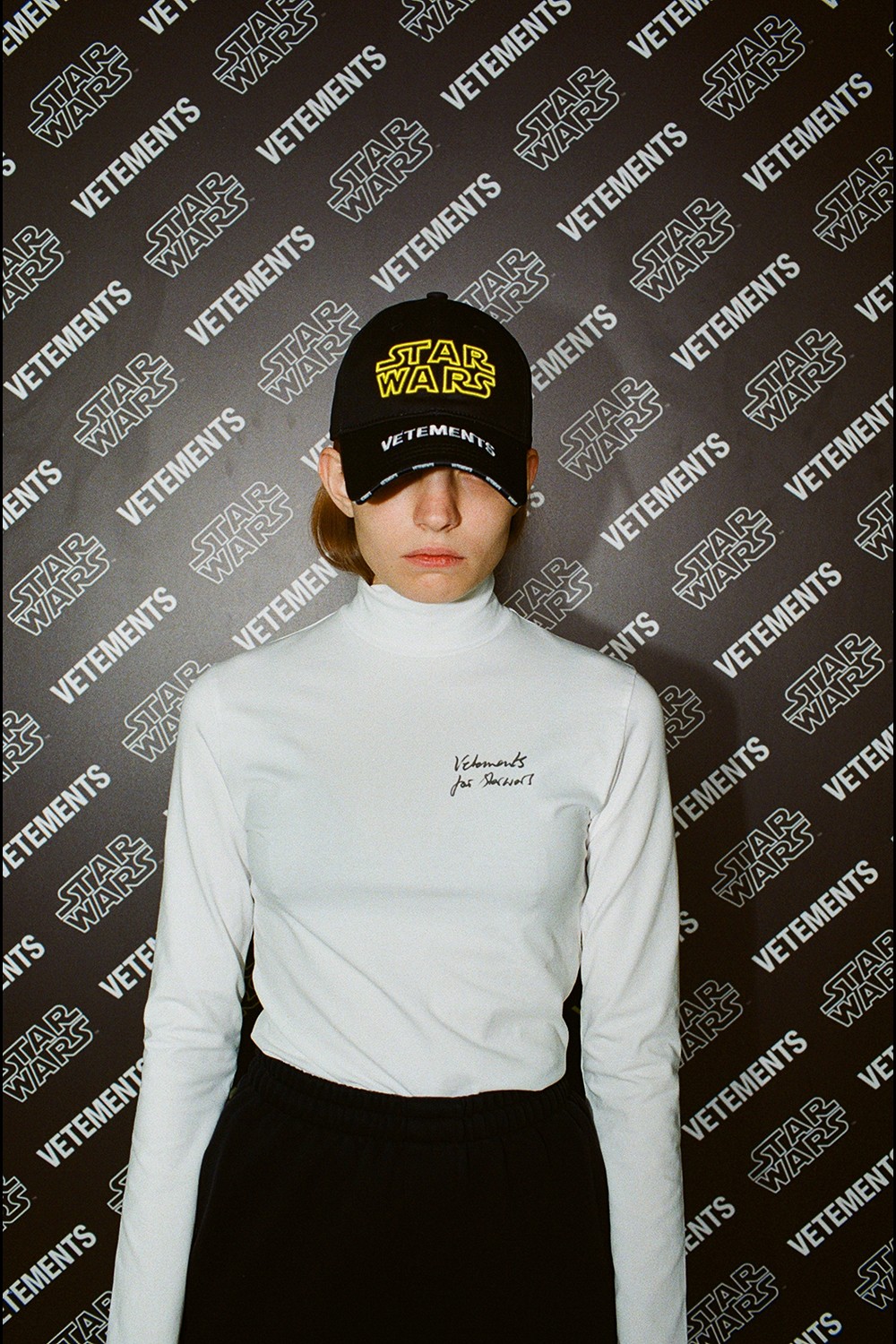 Аксессуары в лини представлены рюкзаком с логотипами “Звездных войн”, Vetements и цитатами из фильмов на шлейках, а также чехлом для iPhone, кепкой, носками и головным платком, покрытым логотипами.