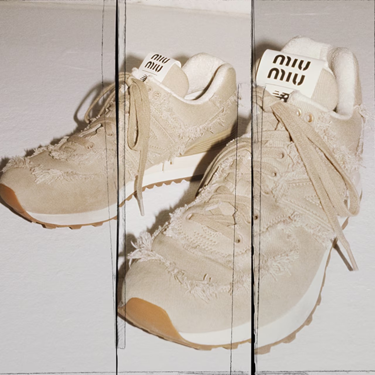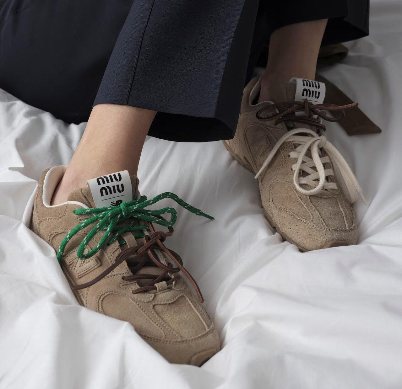 На показі колекції Miu Miu весна/літо-2022 у межах Паризького тижня моди бренди показали деконструйовану версію кросівок New Balance 574.