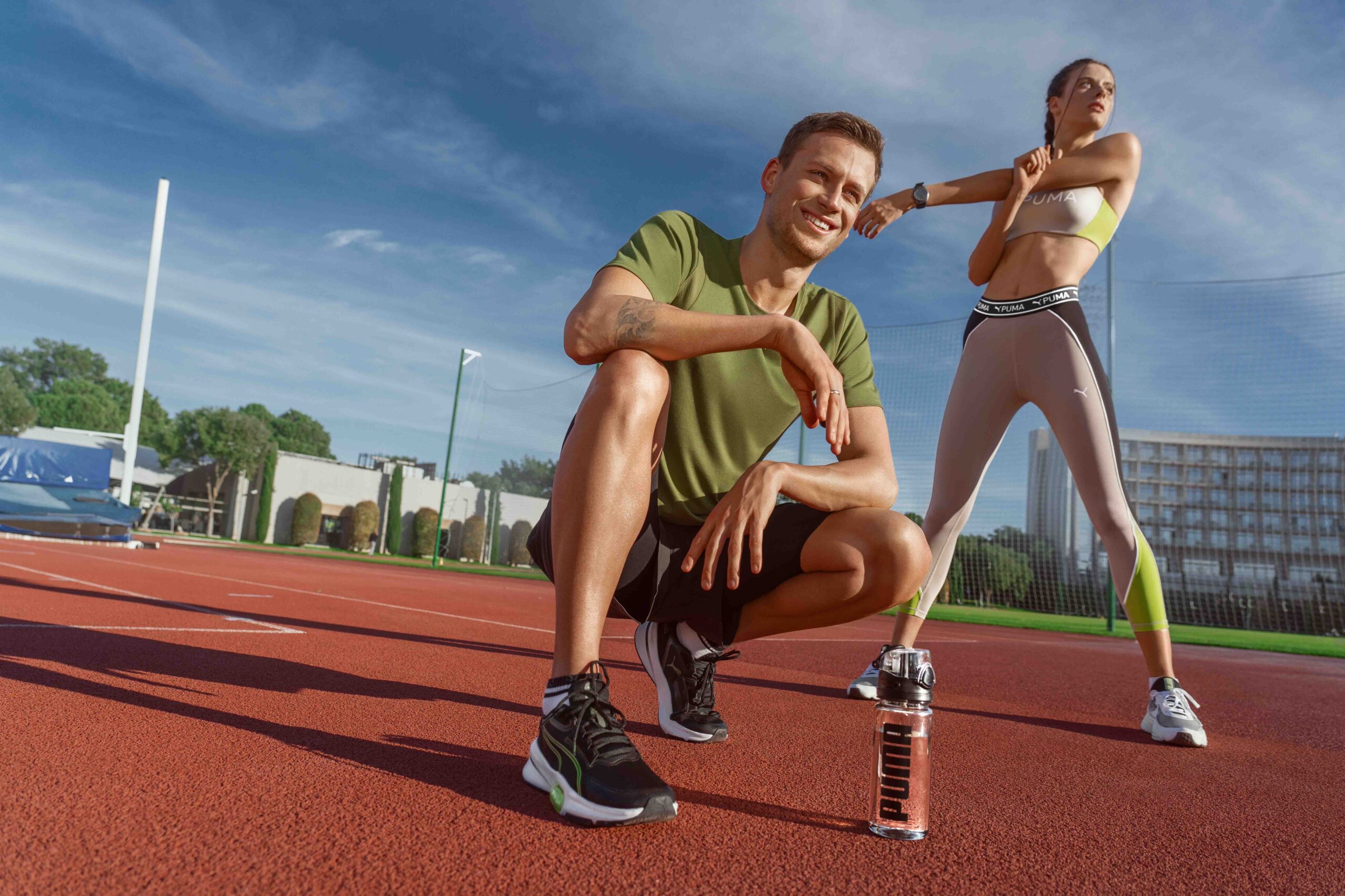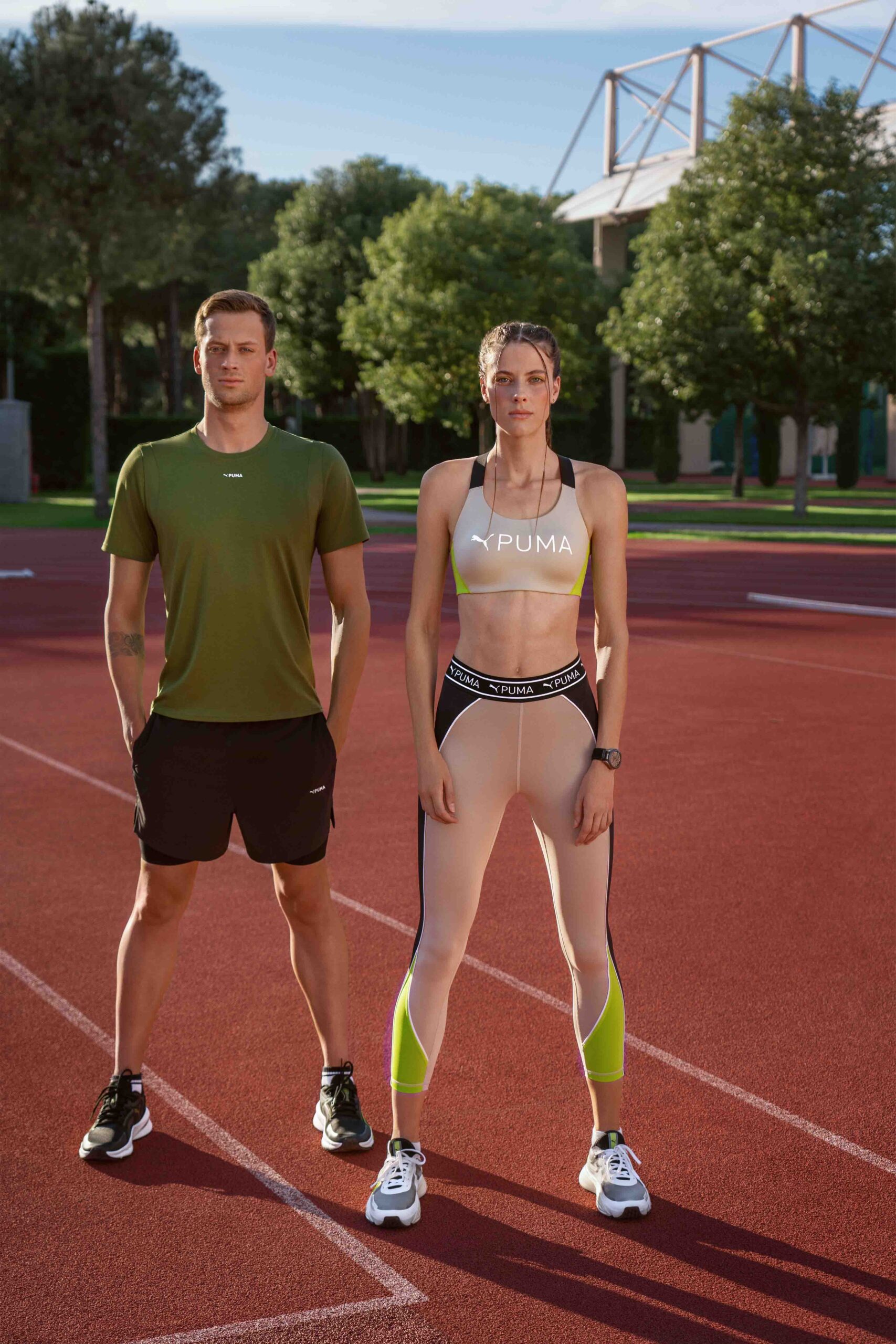 PUMA FIT поєднує тканини, що повторюють форму тіла, яскраві і нейтральні кольори, технології. До колекції ввійшли чоловічі футболка та шорти, жіночі топ і легінси, а також дві оновлені моделі кросівок.