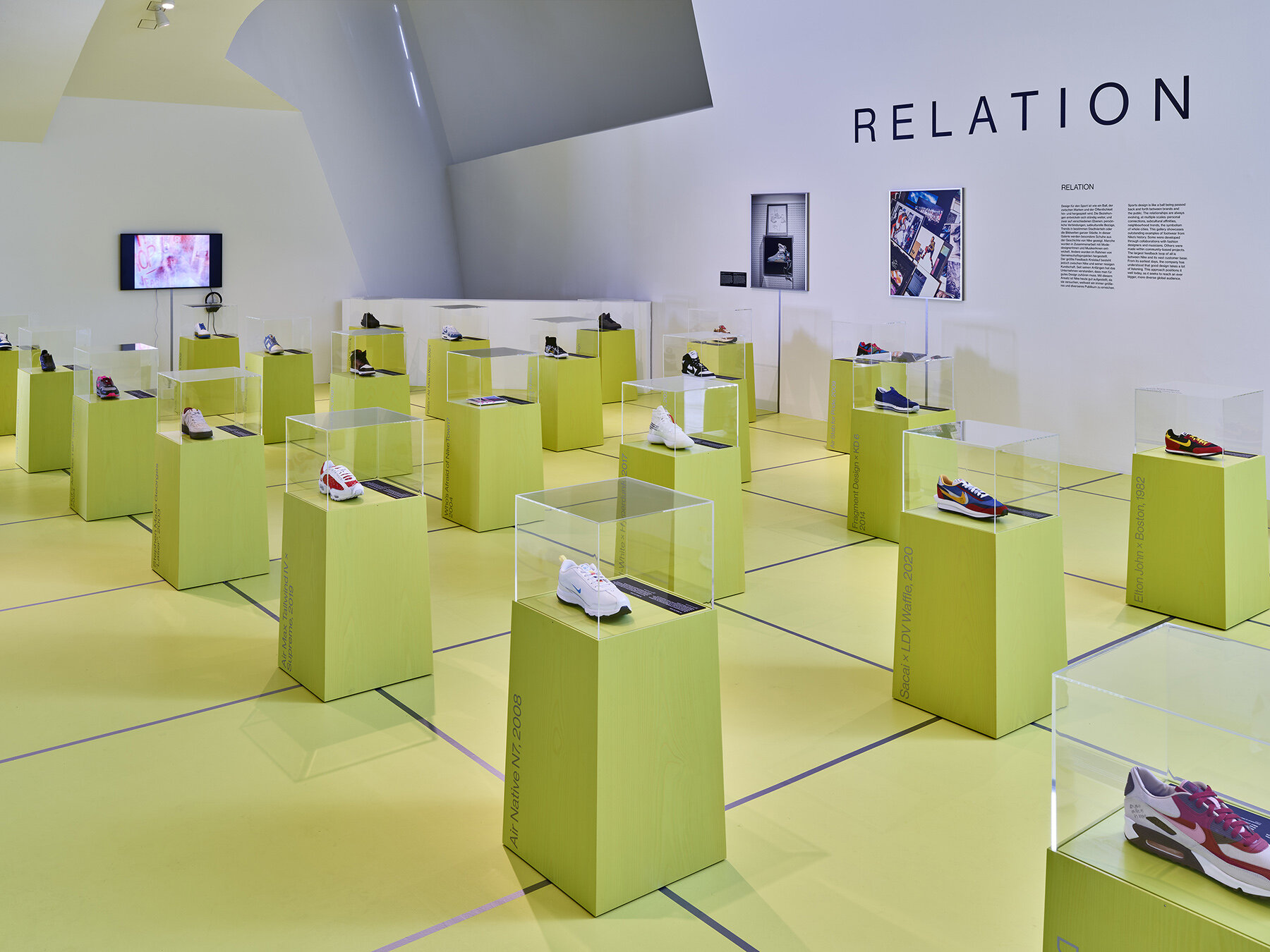 Остання секція Relation експозиції показує колаборації Nike — як із брендами, так і з атлетами. Простір містить 50 кросівок з колаборацій бренду, a також відео та фото з кліпів, реклам та постів у соцмережах.