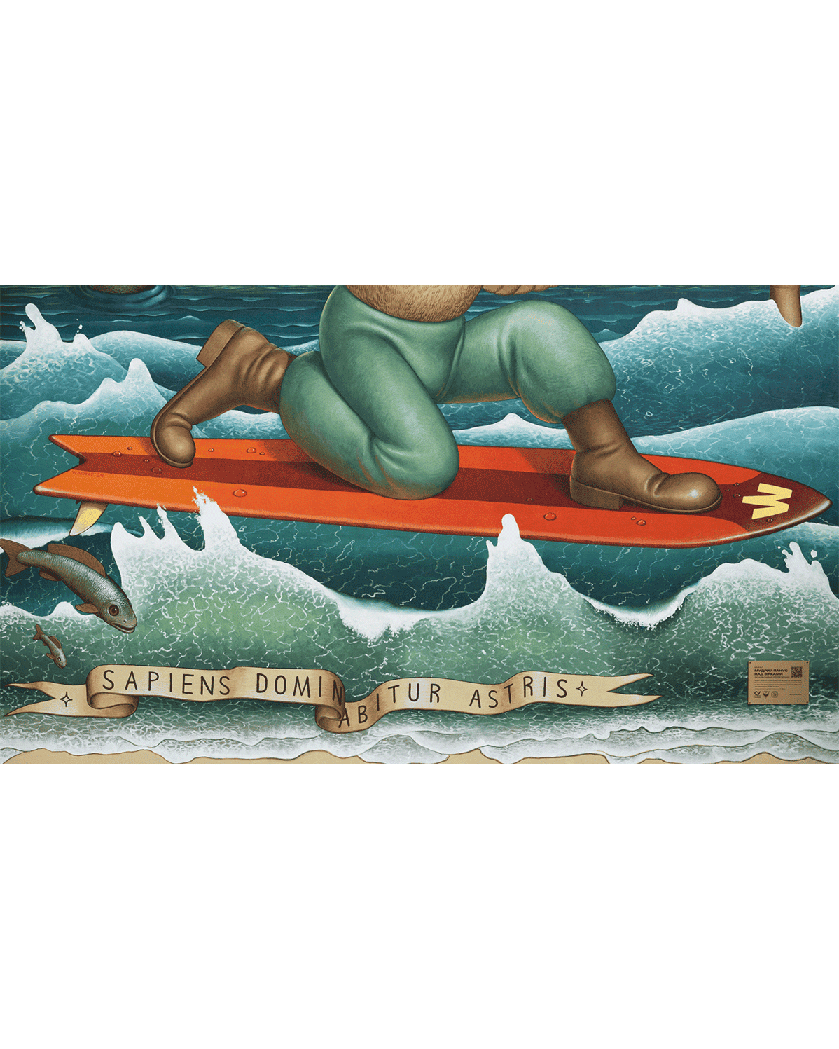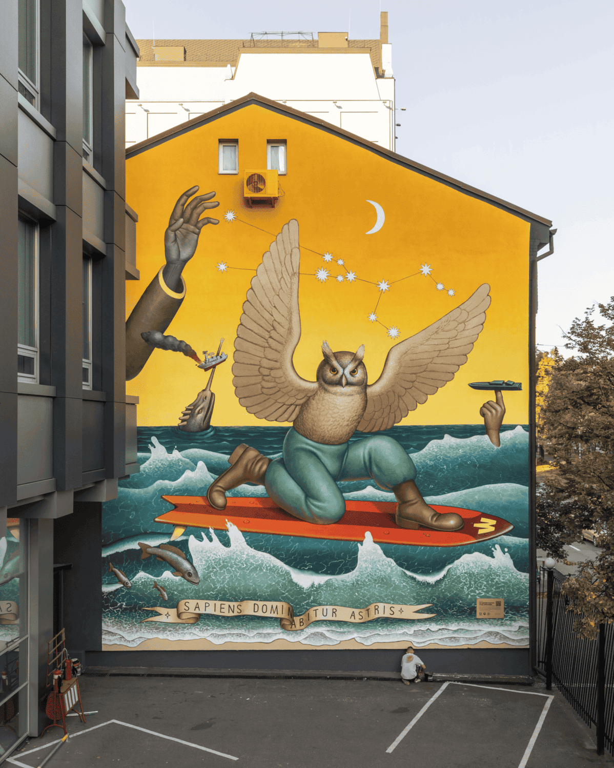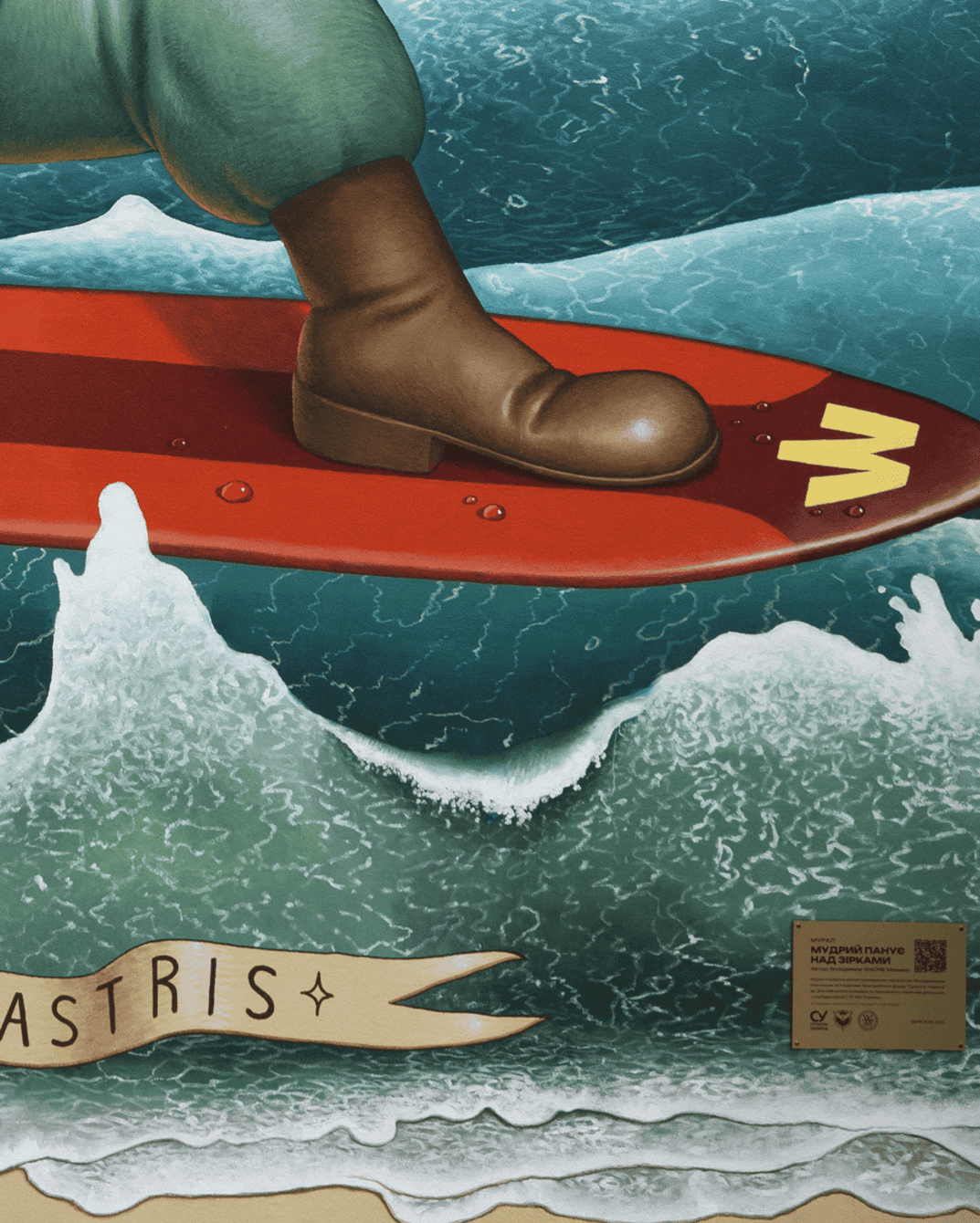 «У небі знаходиться рука мудреця, який керує сузірʼям Тельця — астрологічний знак українського етносу. — пояснює ідею муралу Waone. — Зростаючий місяць тут є метафорою зростання можливостей і сили українських захисників. Символ ГУР, сова, рухається на серфі хвилями Чорного моря. На задньому плані хтось керує “Маґурою“ перед “морським чудовиськом“ (метафора протикорабельної ракети Р-360 “Нептун“), знищуючи російський військовий корабель».
