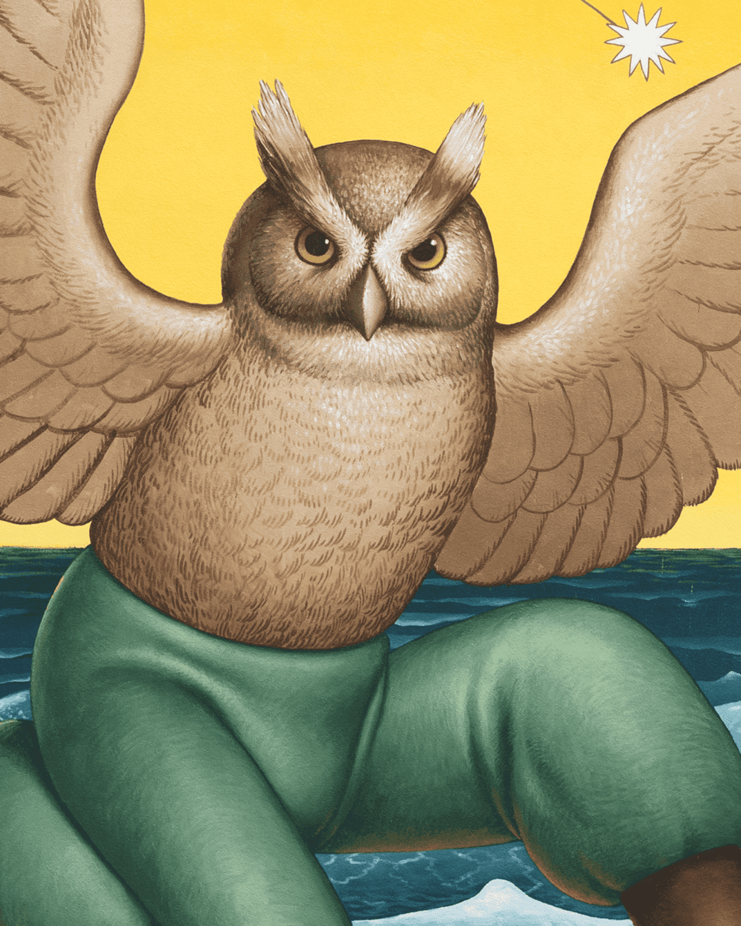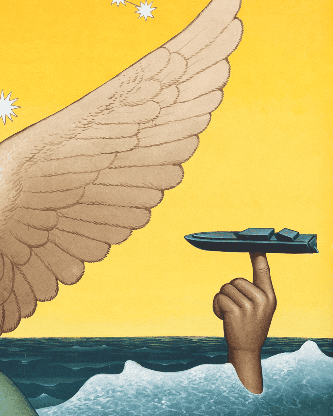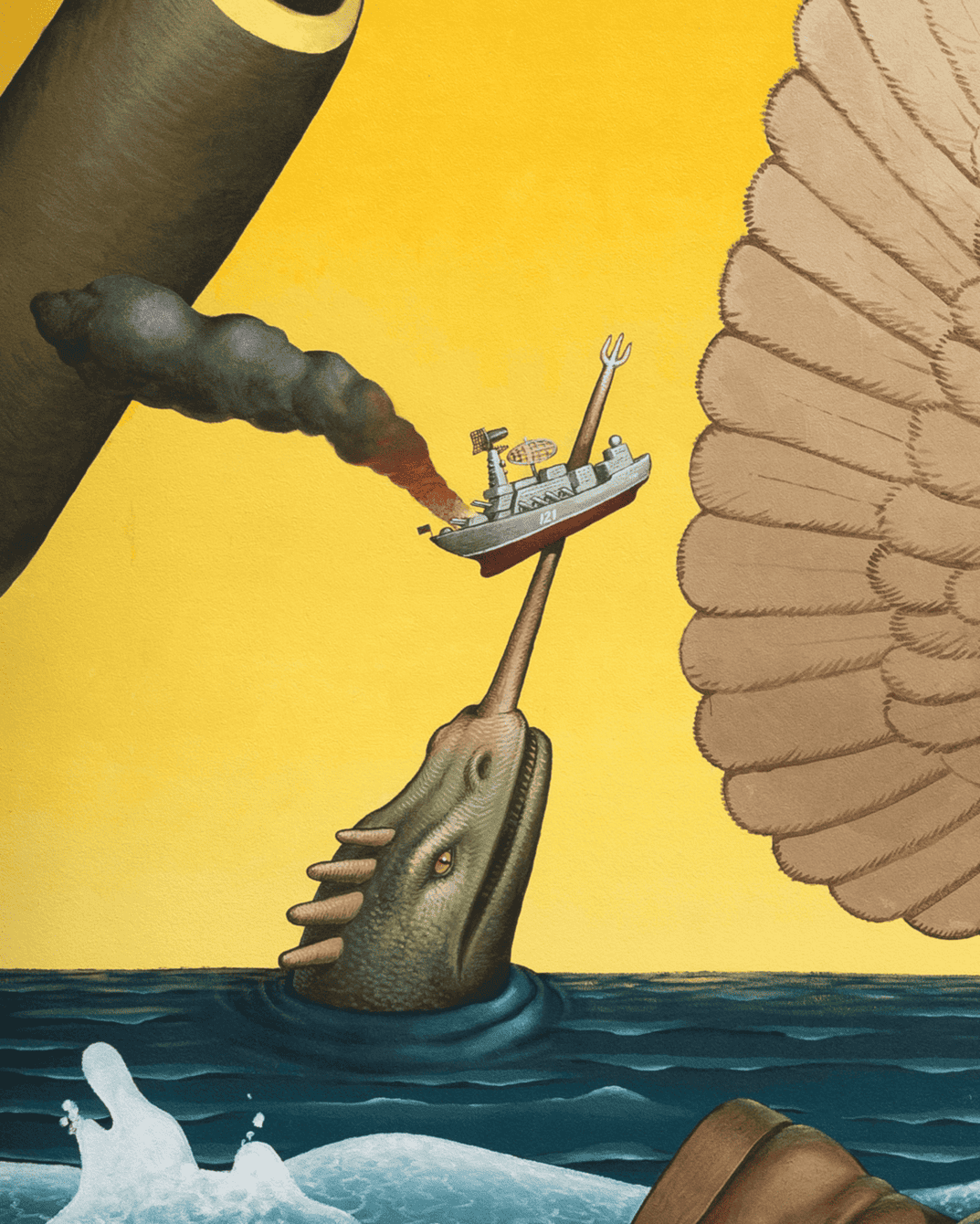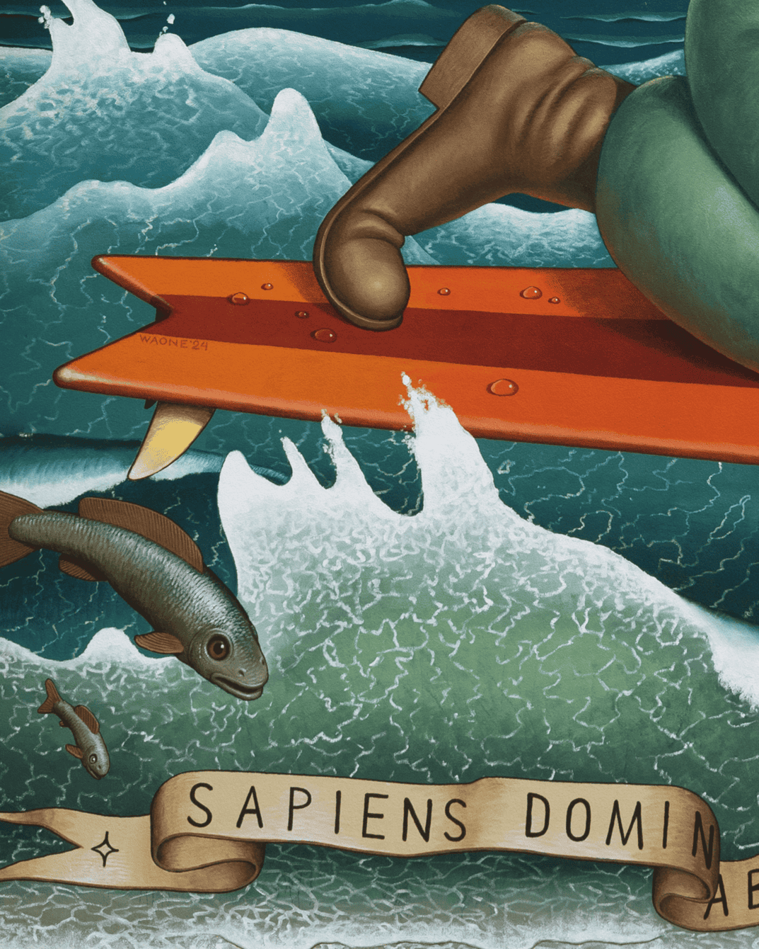 «У небі знаходиться рука мудреця, який керує сузірʼям Тельця — астрологічний знак українського етносу. — пояснює ідею муралу Waone. — Зростаючий місяць тут є метафорою зростання можливостей і сили українських захисників. Символ ГУР, сова, рухається на серфі хвилями Чорного моря. На задньому плані хтось керує “Маґурою“ перед “морським чудовиськом“ (метафора протикорабельної ракети Р-360 “Нептун“), знищуючи російський військовий корабель».