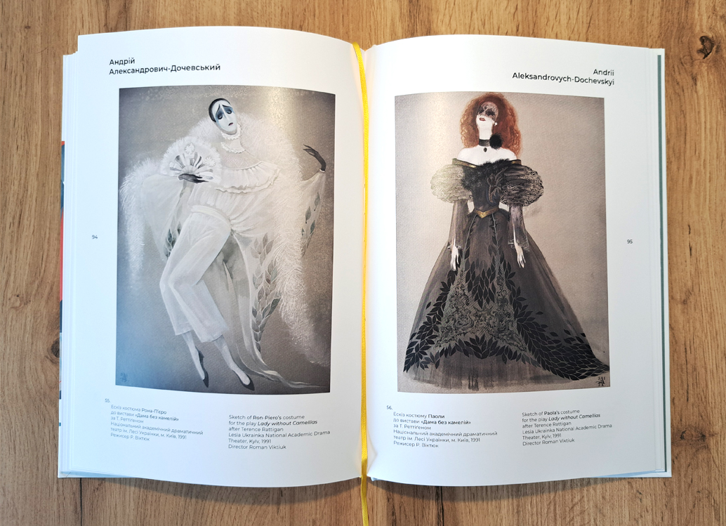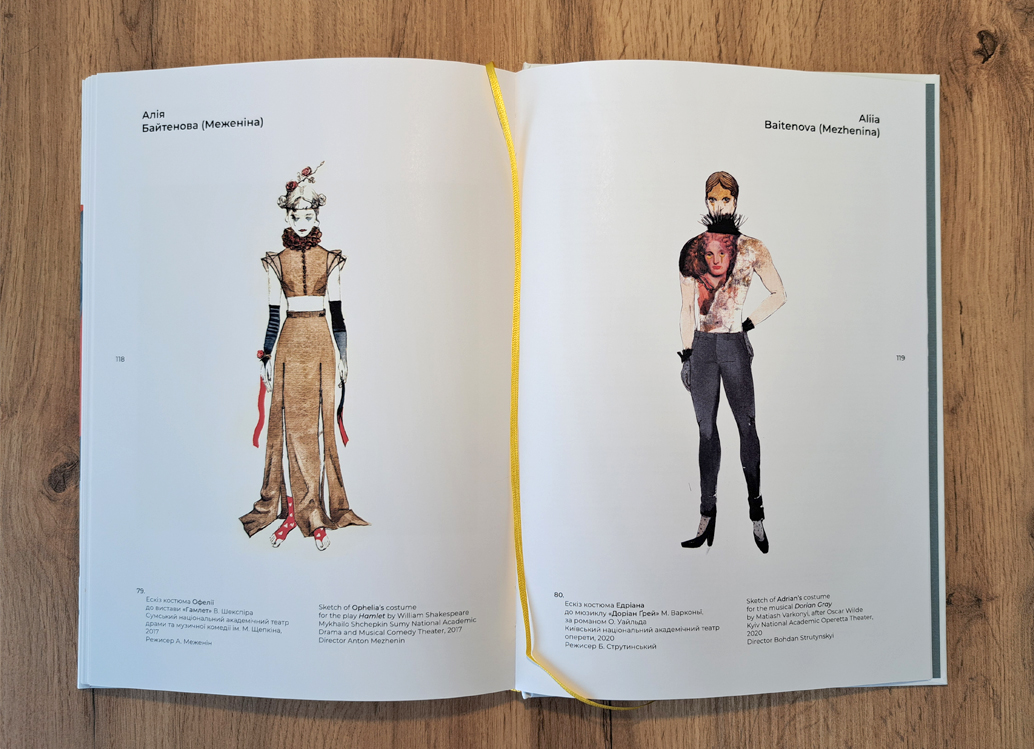 Усього в виданні зібрали 80 малюнків з ескізами костюмів до постанов, які виходили на сценах українських театрів із 1918 року й до сьогодні. Деякі ескізи опублікували вперше.