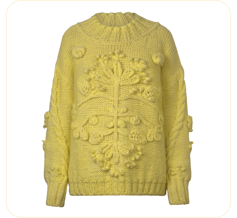 Вовняний светр з об’ємним візерунком, який натхненний прикрасами короваю і вільця — деревця, яке прикрашали напередодні весілля. Річ повністю виготовлена вручну: на створення одного такого светра йде до 25 годин. Також Gunia Project представили жилет з таким же візерунком. Вперше вироби представили під час Ukrainian Fashion Week у будівлі Золотих воріт.