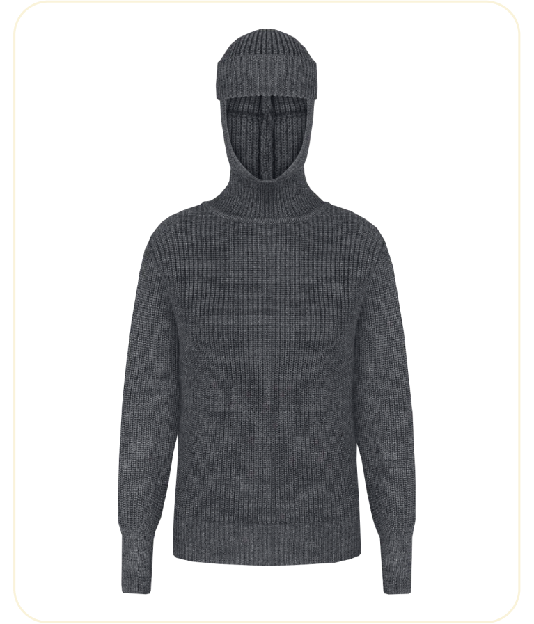 Светр вільного крою з балаклавою і довгими рукавами з колекції 2021 року. Створюючи цей айтем, Світлана Бевза надихалася княгинею Ольгою. Своєю формою балаклава нагадує коруну, одягнуту поверх убруса — у таких прикрасах Ольга зображена на картинах митців, а також мозаїках і пам’ятниках.