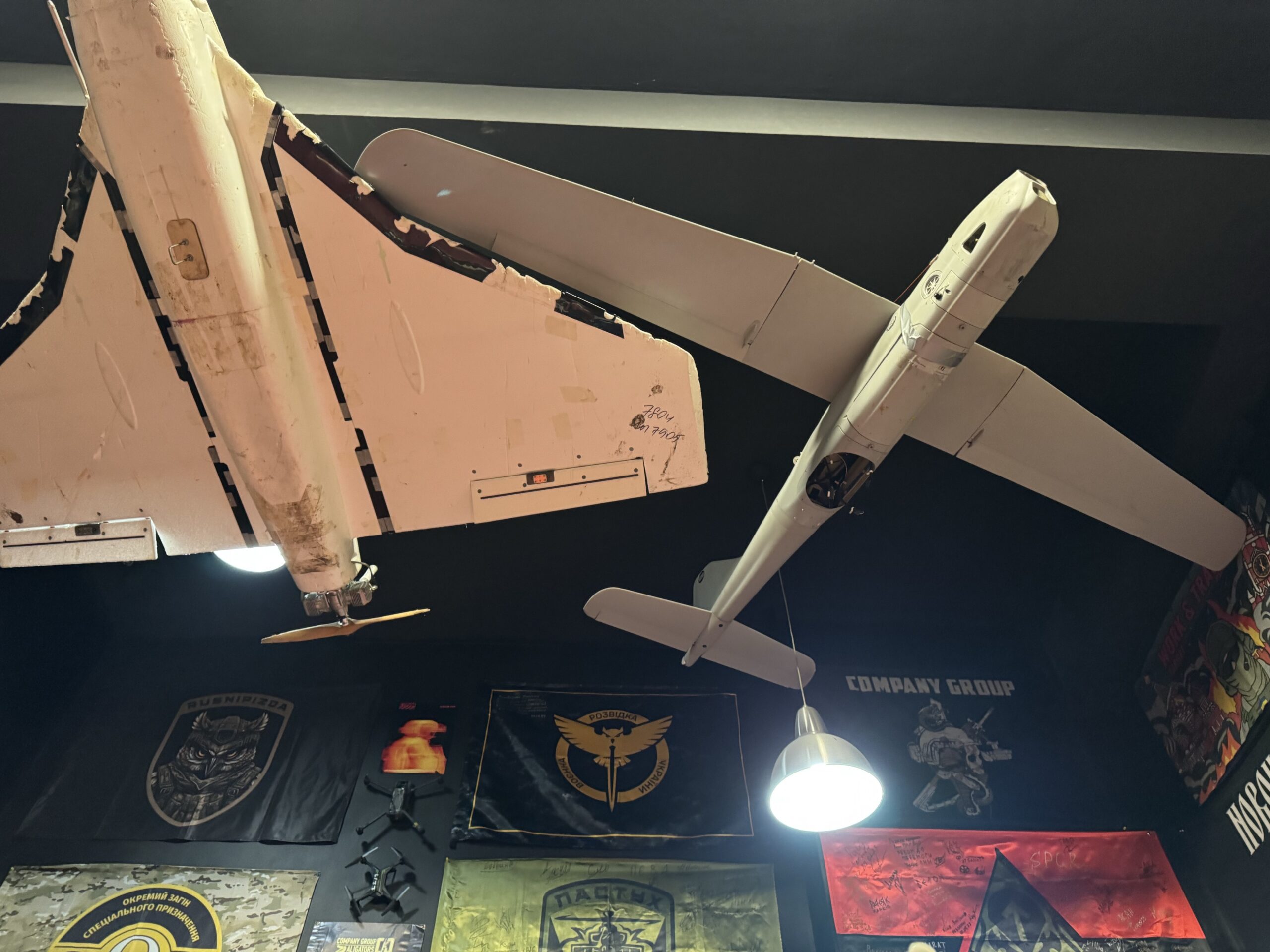 З величезного масиву експонатів Максим виділяє кілька знакових об’єктів. Наприклад, два об’єкти з вишок Бойка. Перший — прапор, з яким бійці ГУР записували звернення до президента, коли взяли вишки під контроль. «Він провисів там під постійними обстрілами. Коли хлопці його зняли, на тканині залишилися сліди від уламків снарядів і місця, де матеріал просто поплавився», — розповідає Максим.