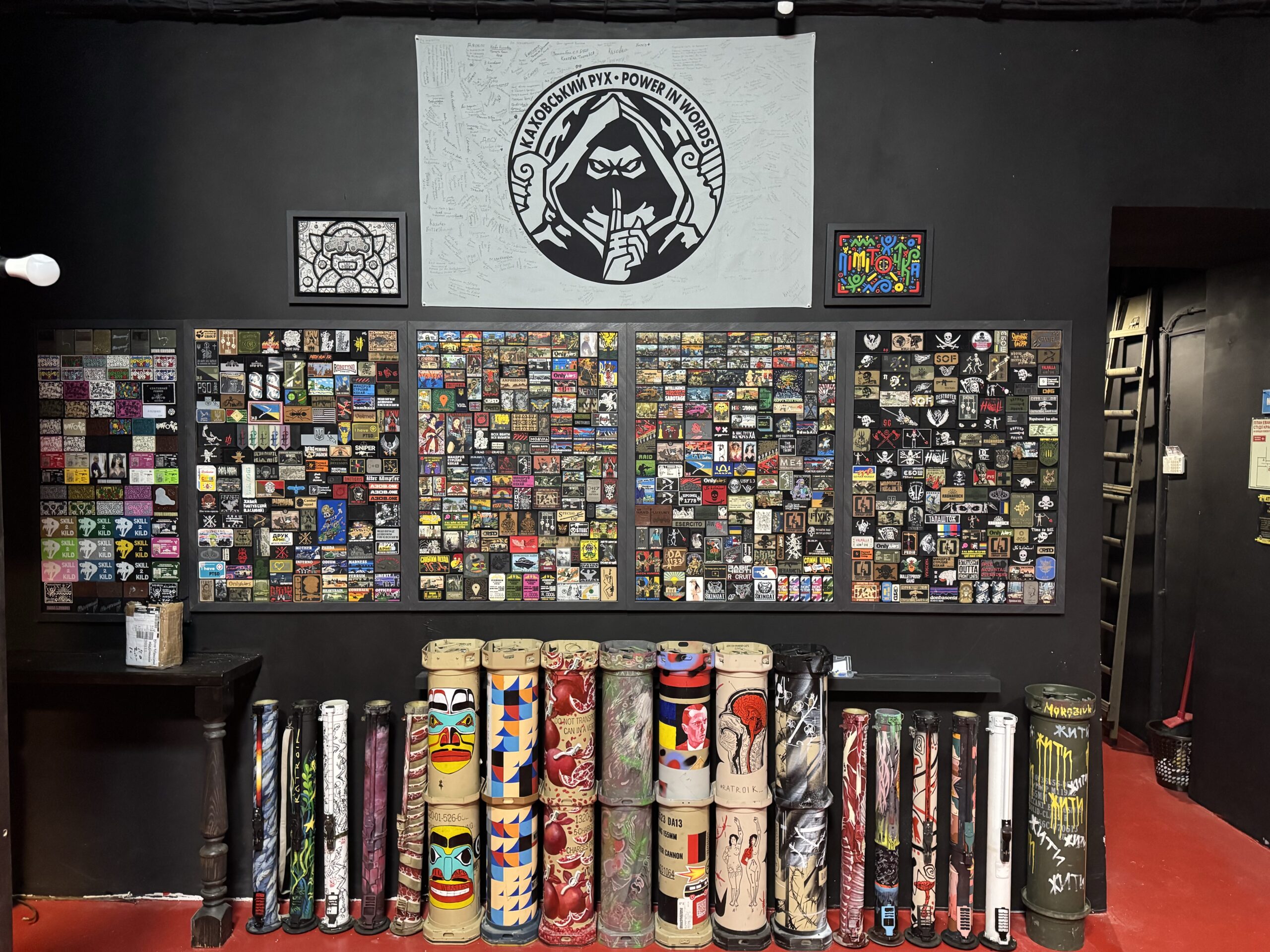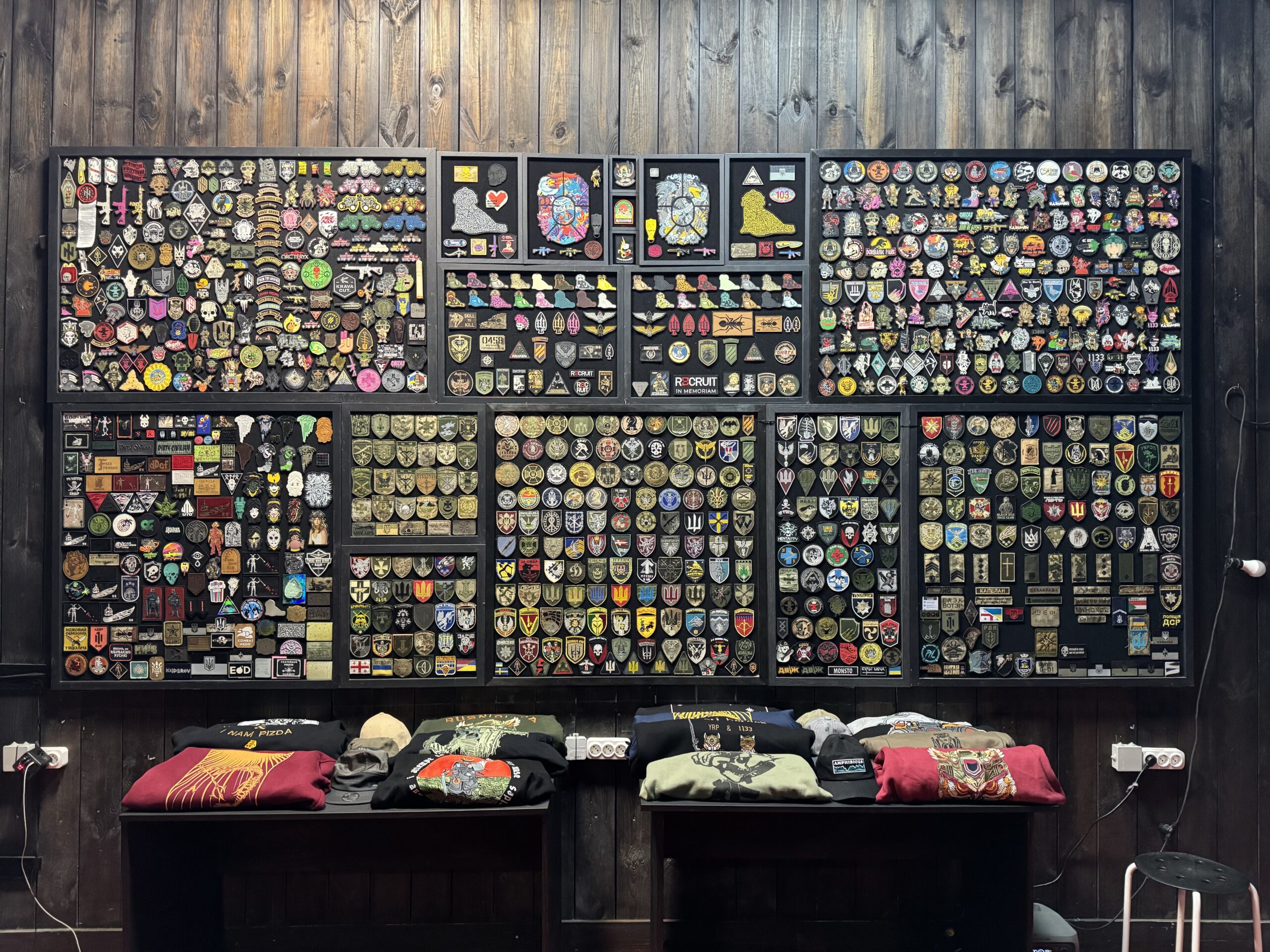 На іншій стіні — приблизно 1300 шевронів і патчів. Серед них як офіційні статутні знаки підрозділів, так і авторські патчі, «які створюють військові або дотичні до військової справи люди та волонтери».
