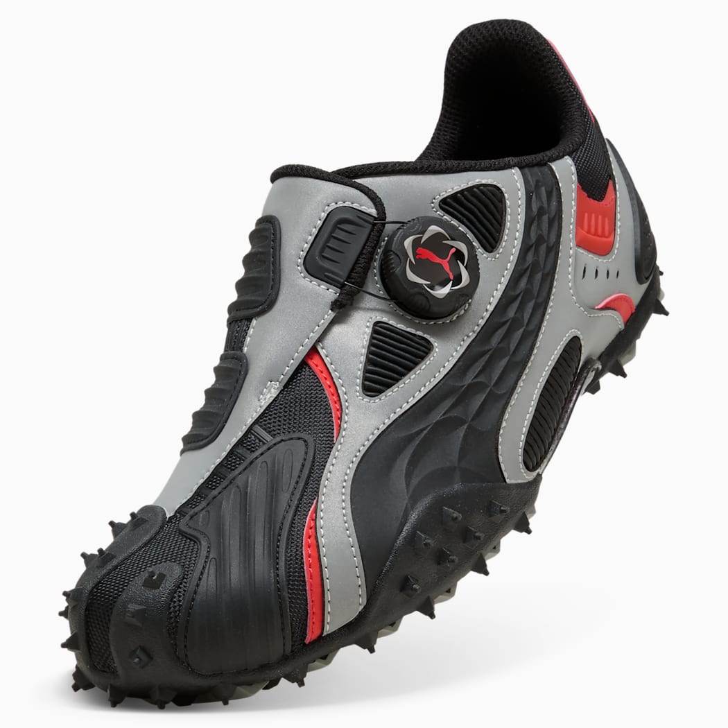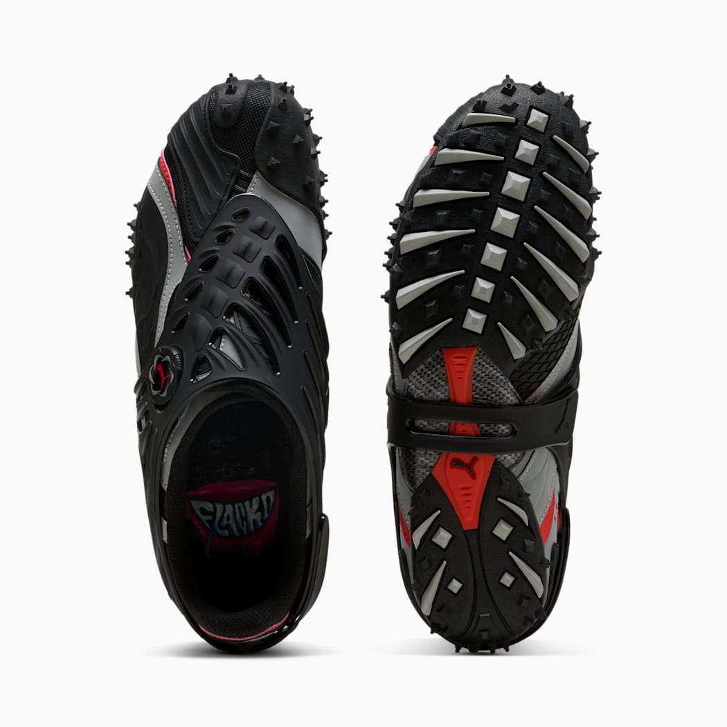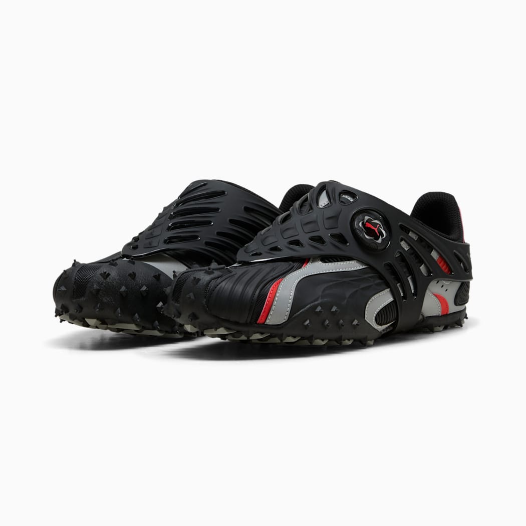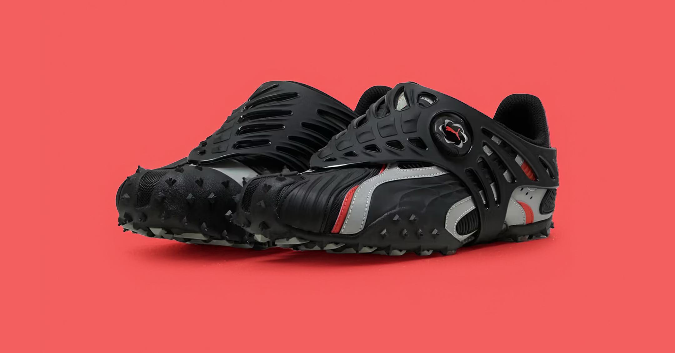 Нові Mostro Gabbia Leather також отримали дискову систему шнурівки PUMA DISC. Кросівки представили у єдиному колорвеї — чорному з червоними та сірими деталями — який відсилає до тематики мотоспорту, притаманної колабораціям A$AP Rocky з PUMA.