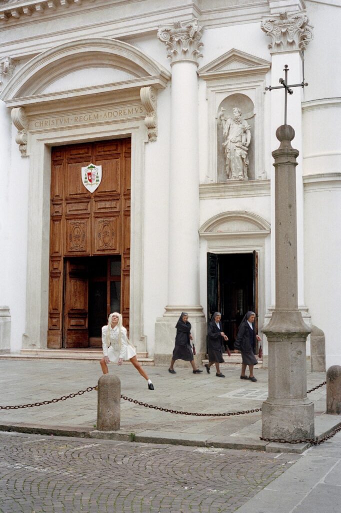 Съемки лукбука прошли в итальянском городе Падуя, где Хлои позировала в длинном синем парике отсылающем к образу Сейлор Мун (героиня одноименной серии японских аниме. — Прим. DTF Magazine)